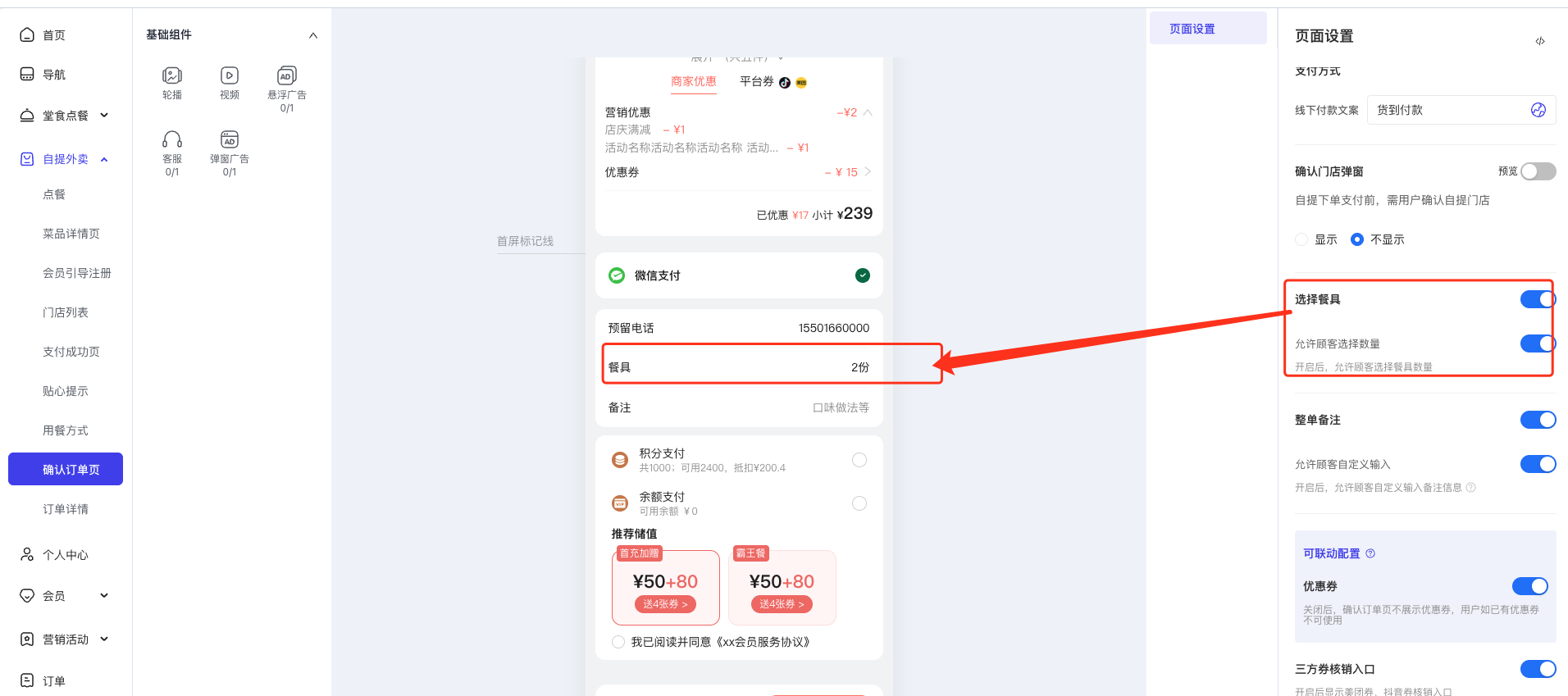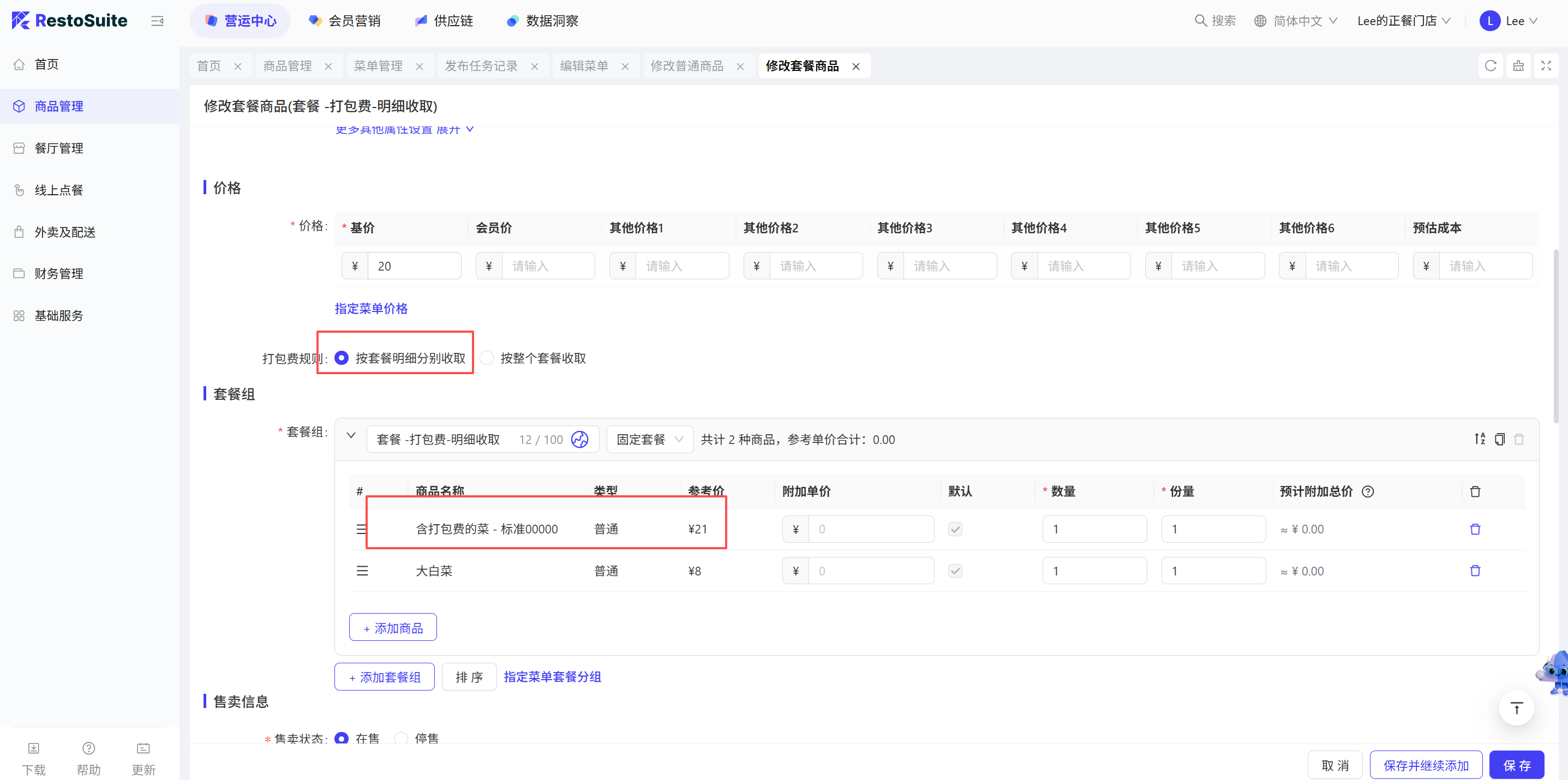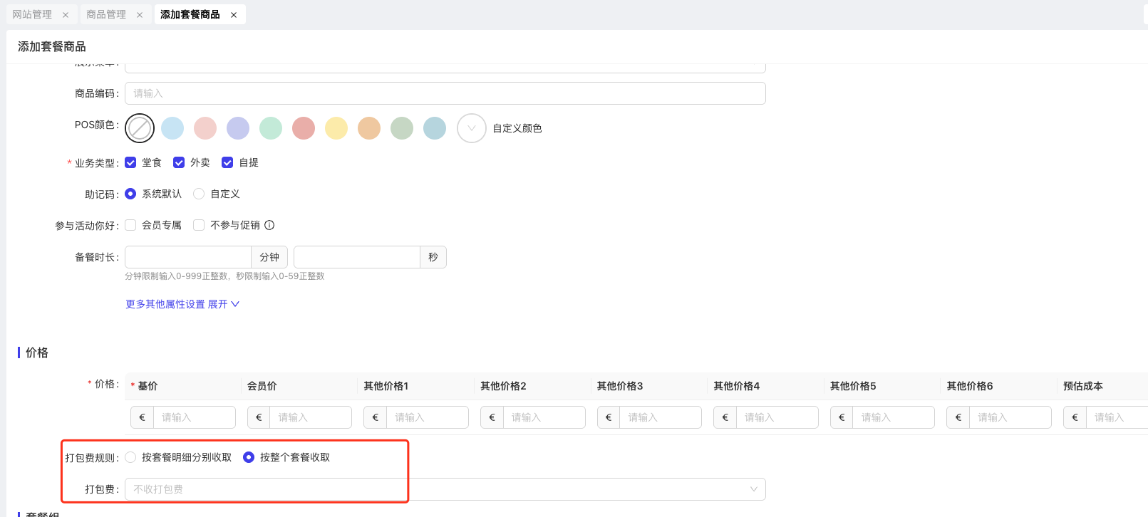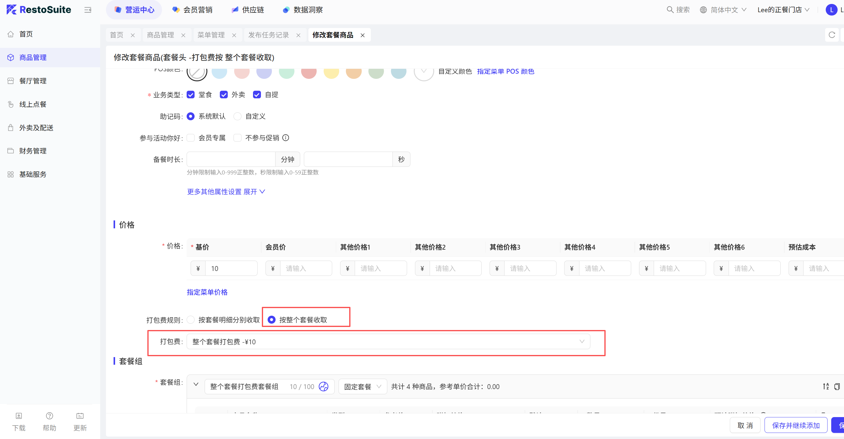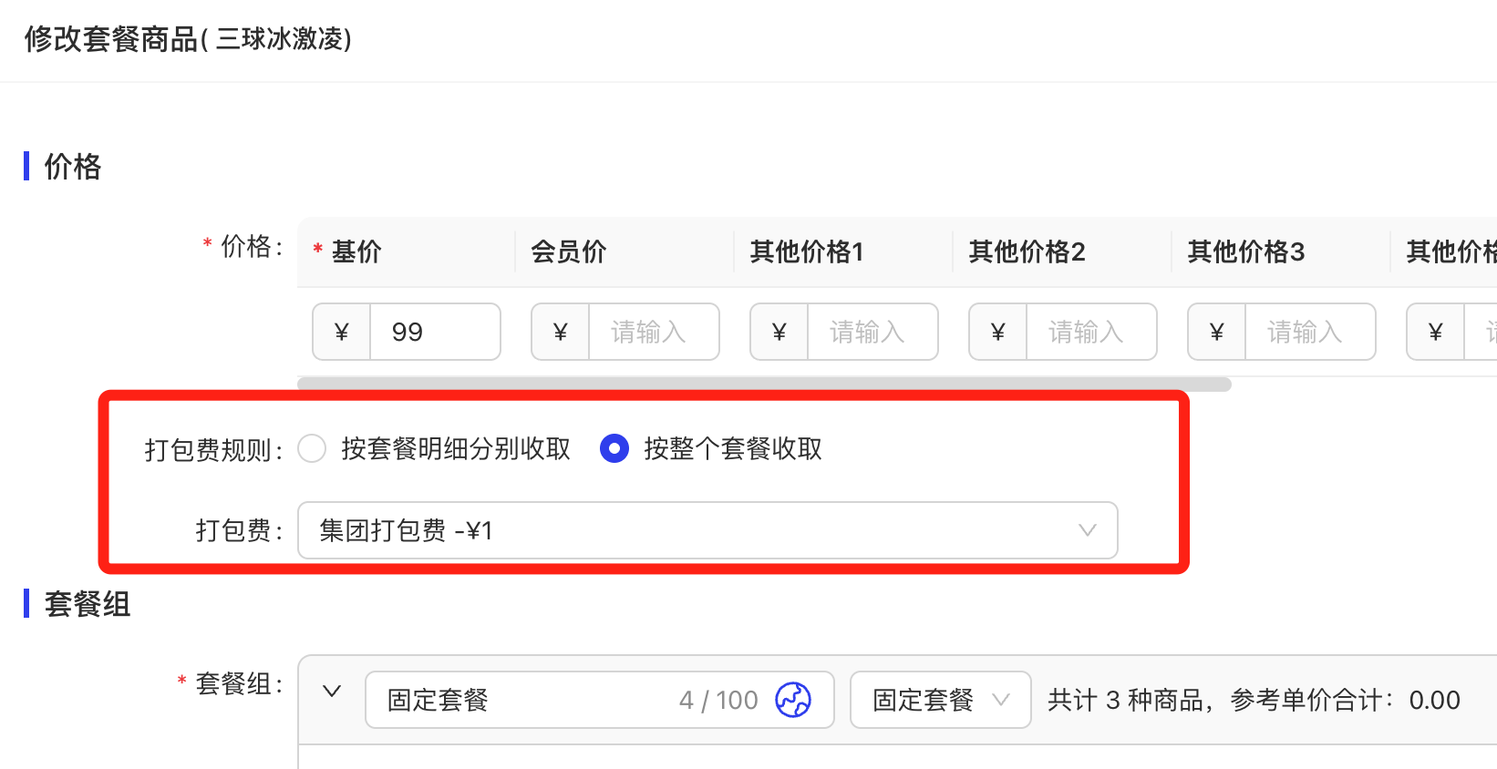 1.3 支持套餐头单独收取打包费