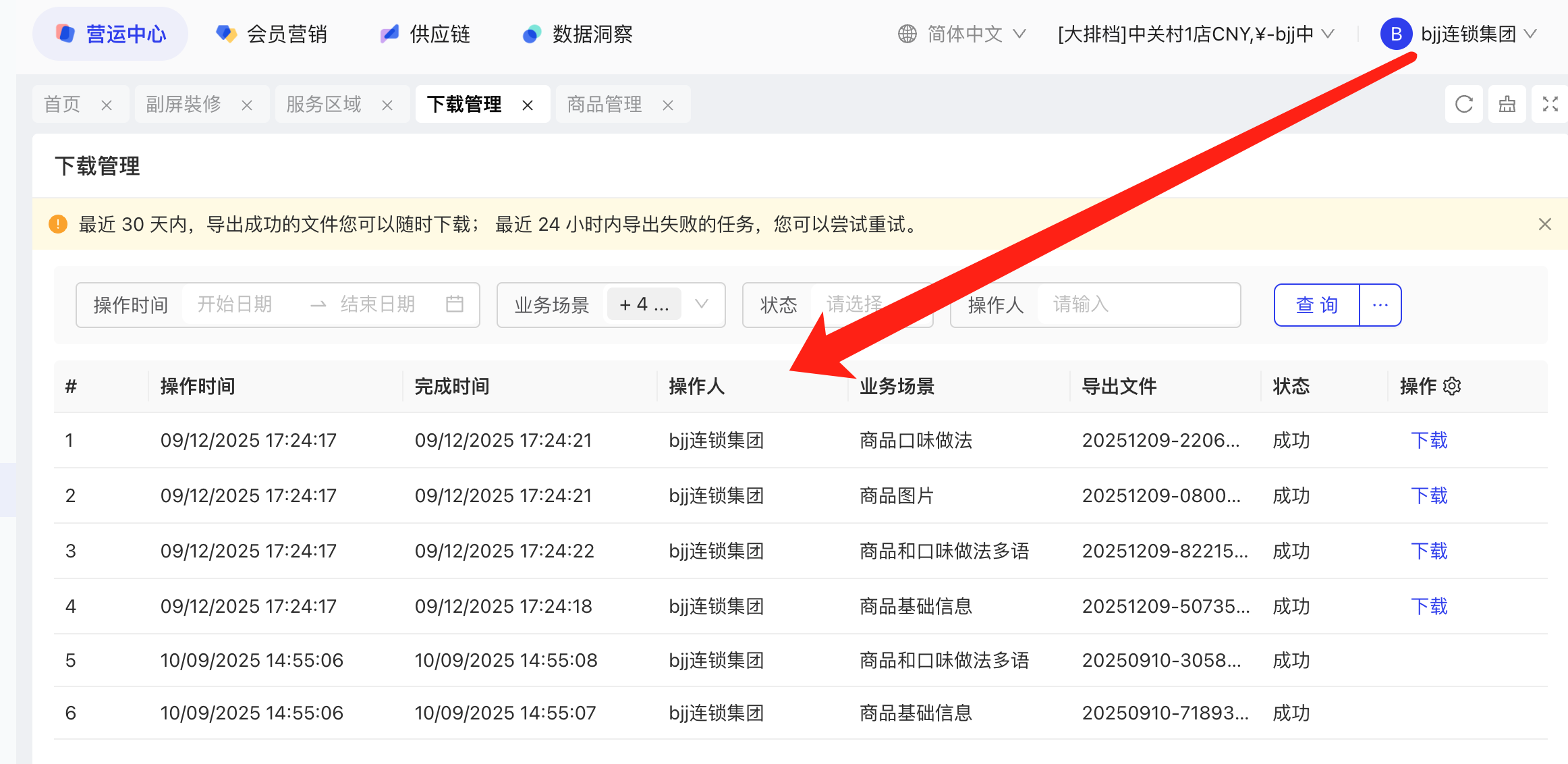 - 支持查询范围:集团视角,配送中心视角,门店视角