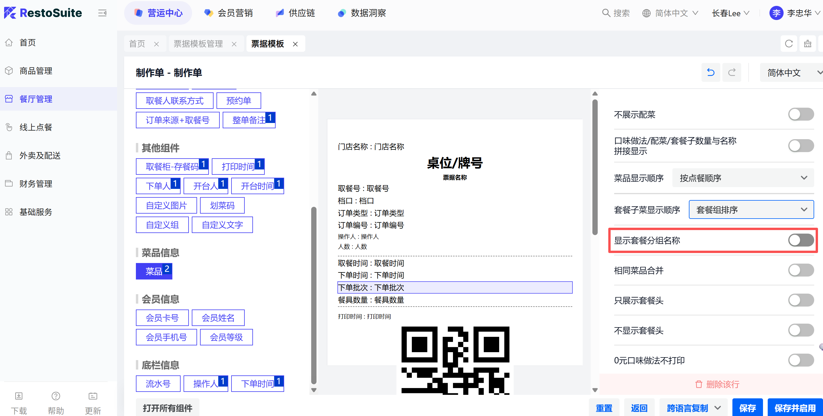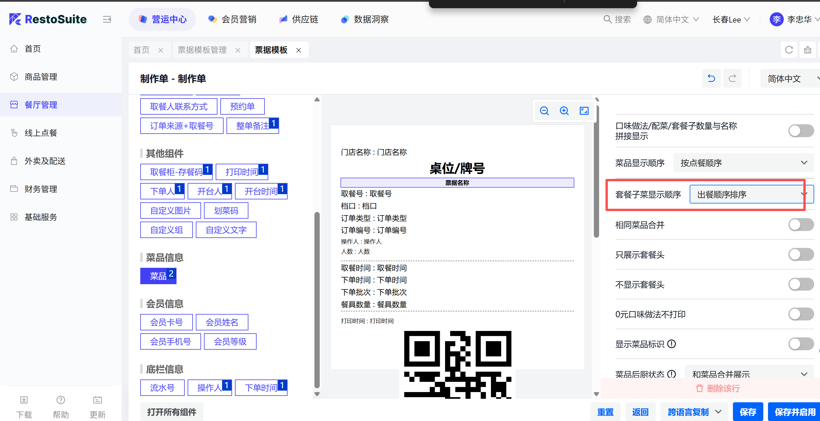 - 功能路径:餐厅管理-模版管理-菜品组件