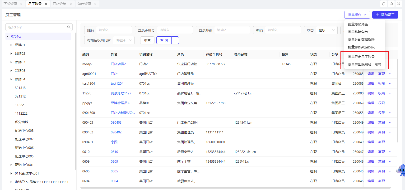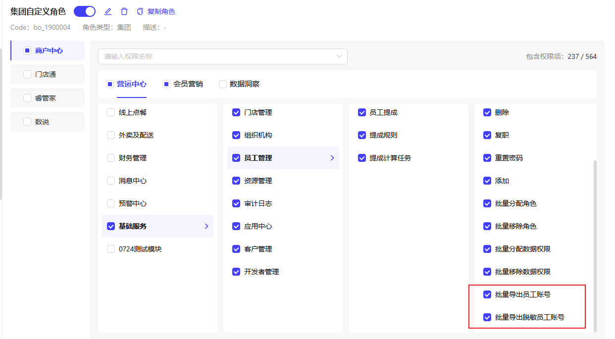 12.2 员工账号支持导出基本信息和角色信息