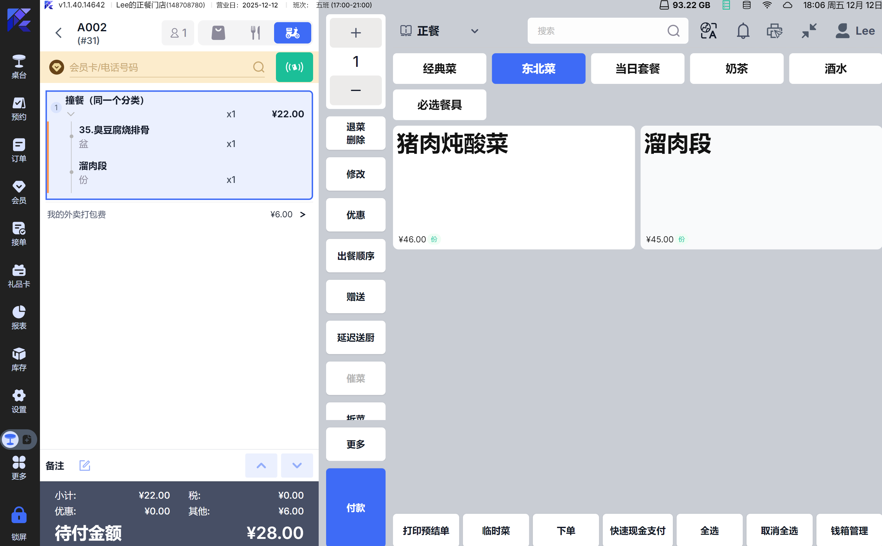 - 新增“临时菜”功能入口
