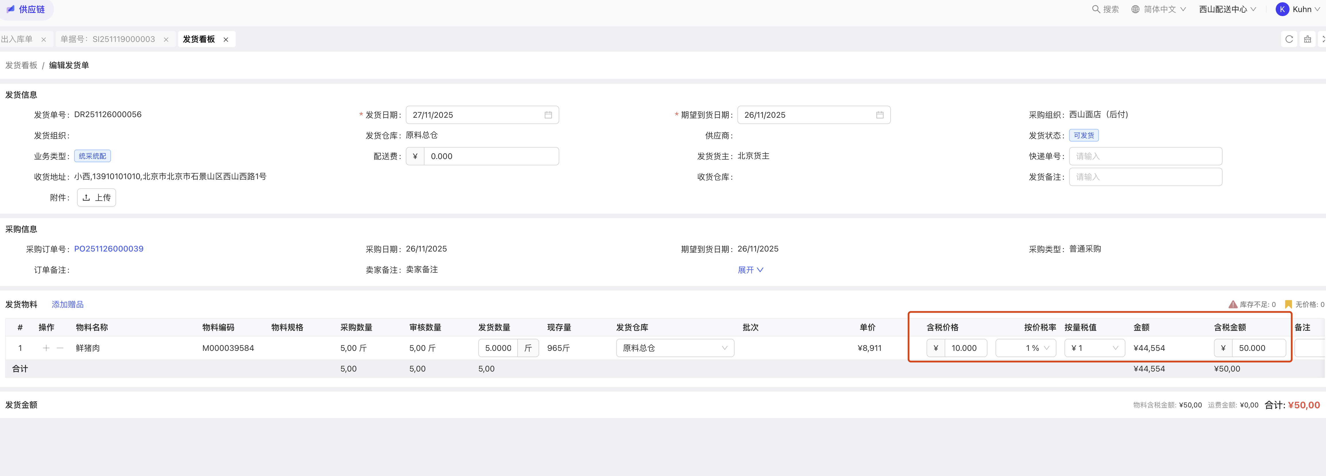 - 功能简介:在发货看板中编辑发货单,支持修改物料明细的销售价格、税率,完成对价格的调整