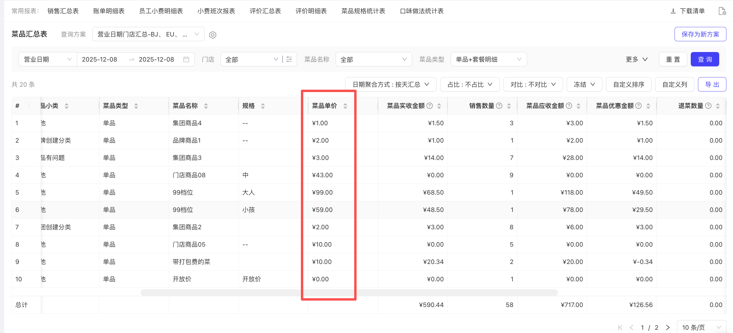 - 使用场景:统计菜品原价