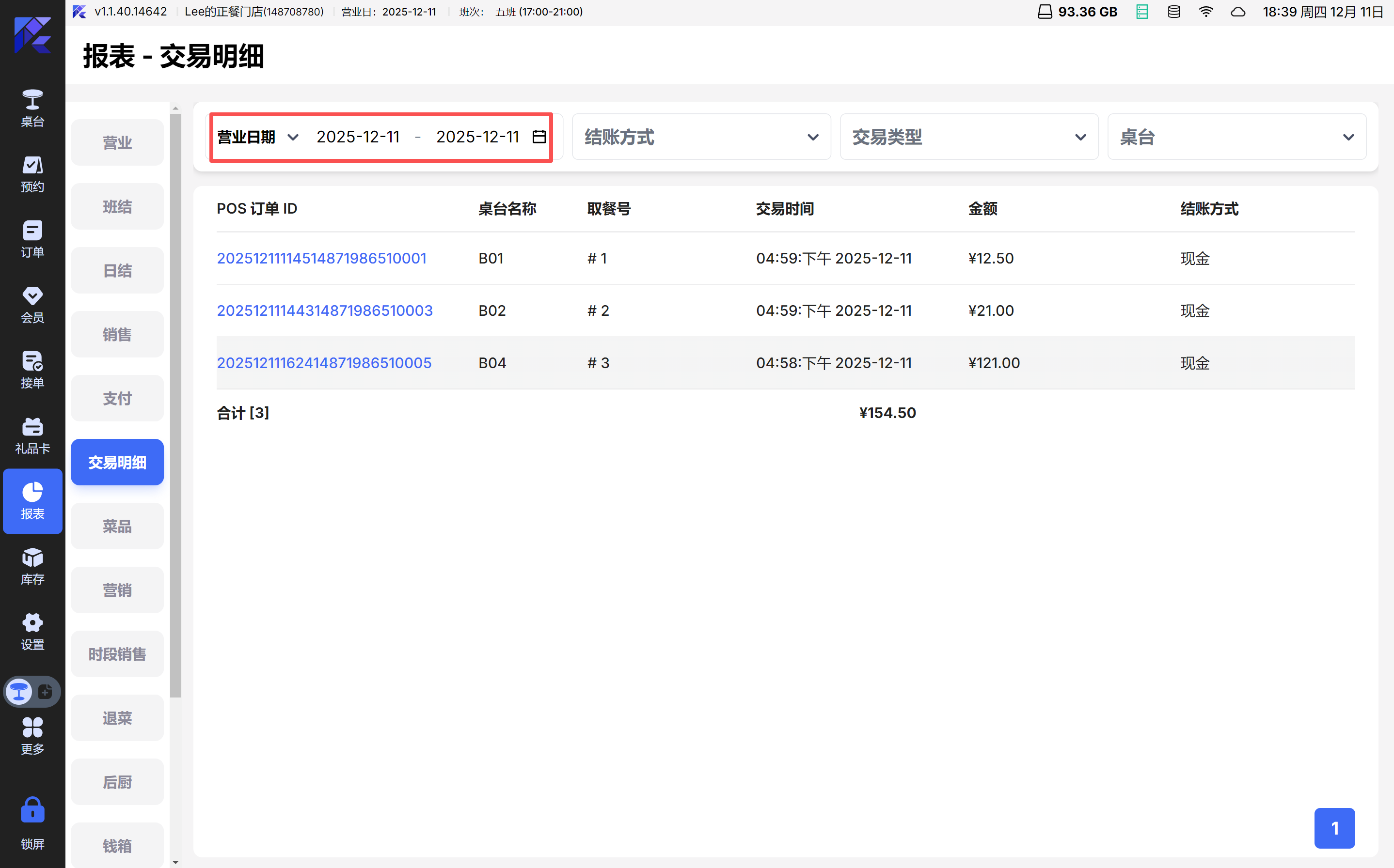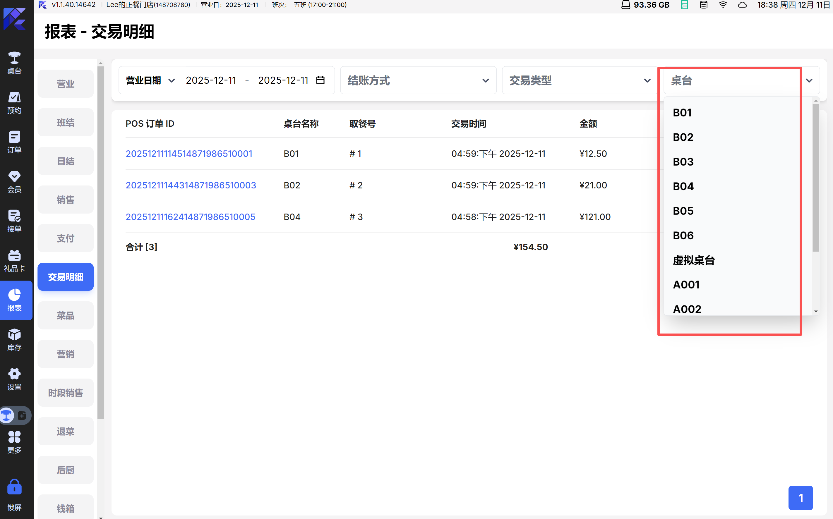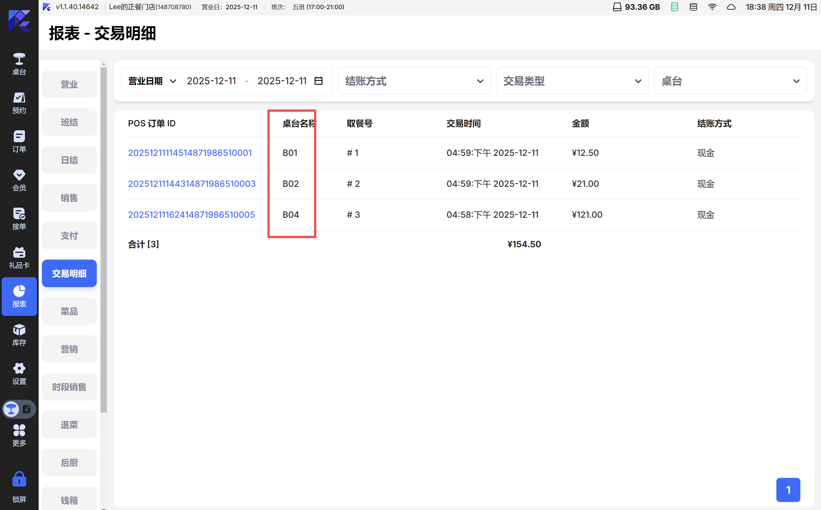 2.3 交易明细报表 - 加营业日和桌台号筛选和数据列 POS 【1.1.40.0】