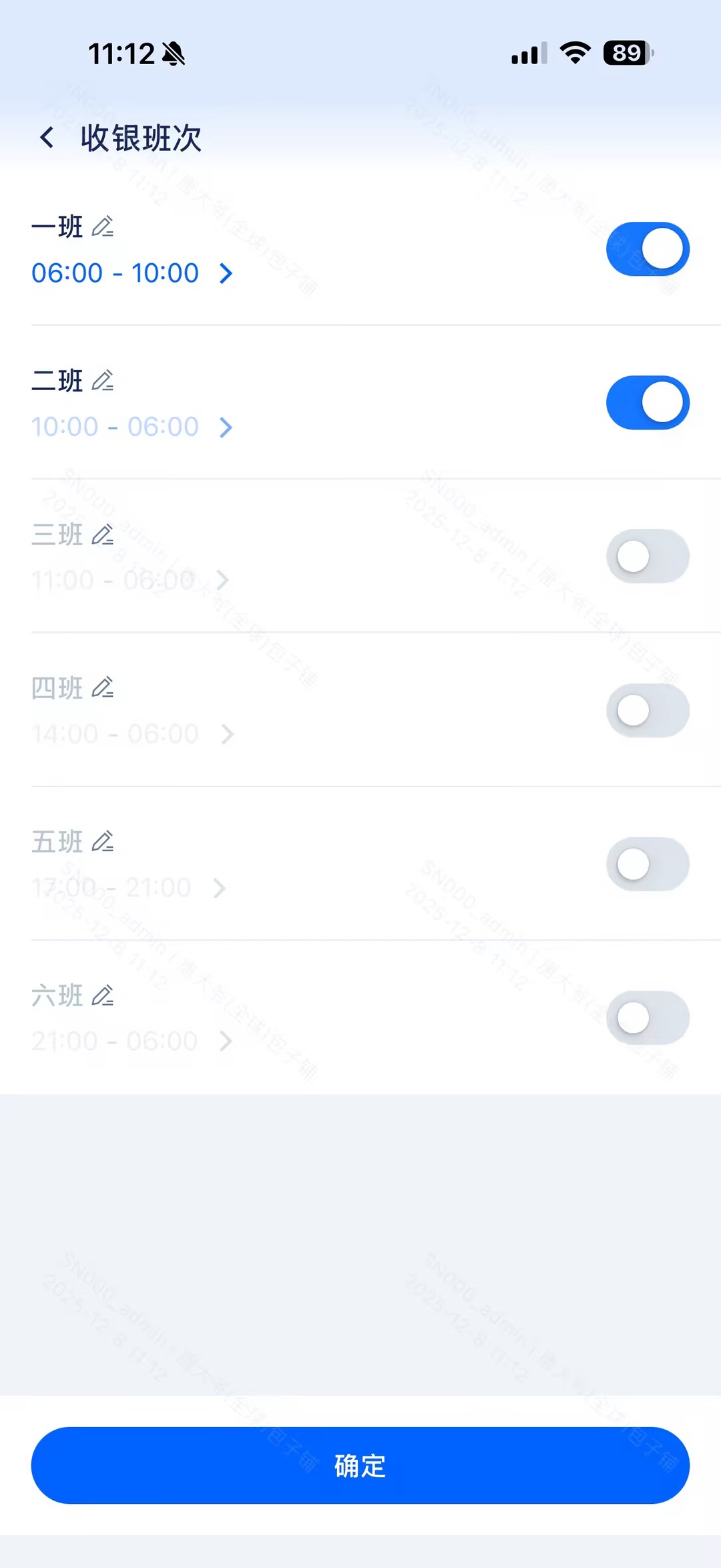 - 餐段班次维护