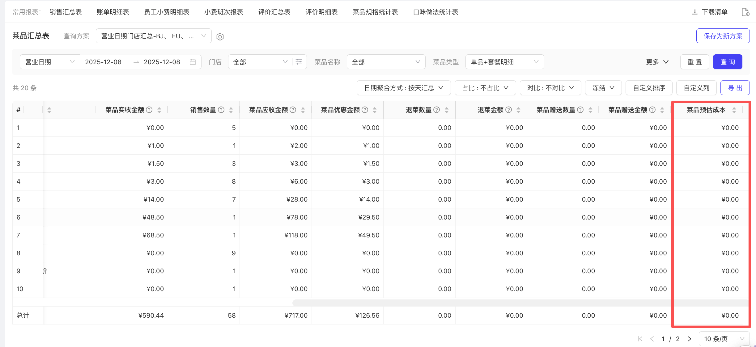 - 使用场景:统计菜品预估成本
