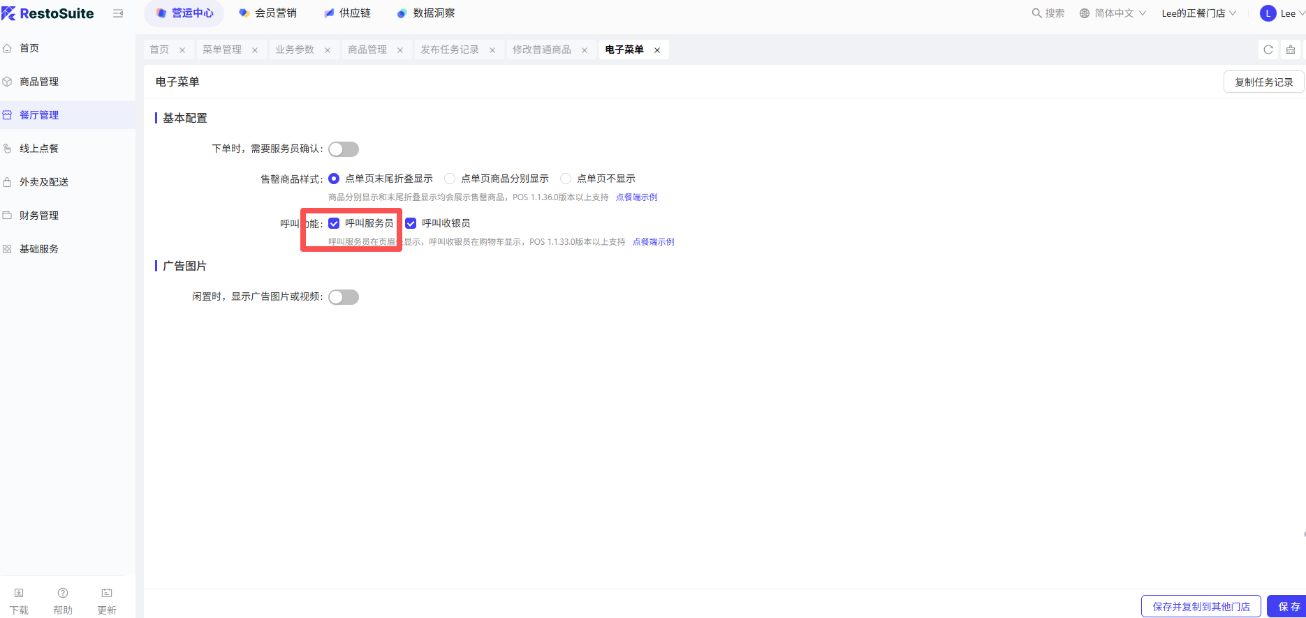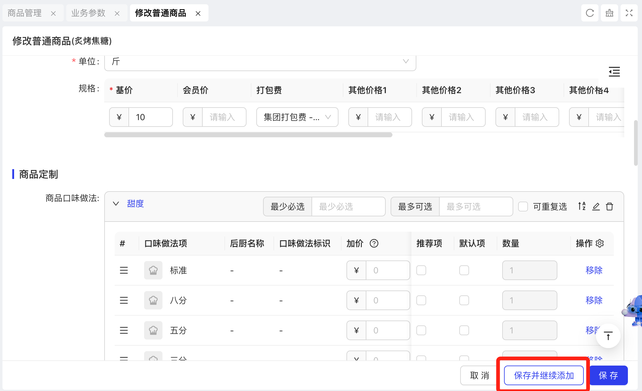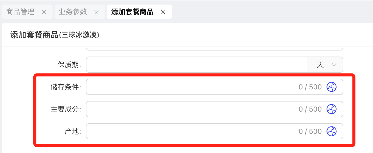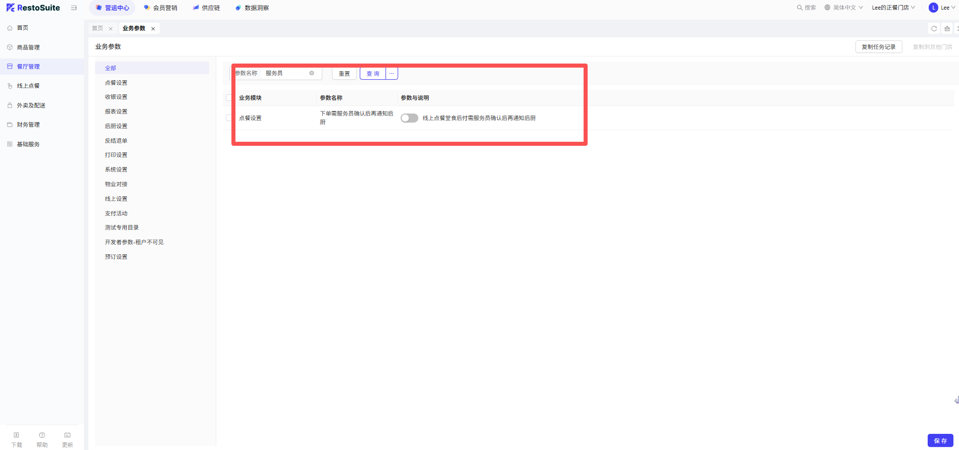 - 功能路径:餐厅管理-模版管理-通用组件-菜品组件-业务参数