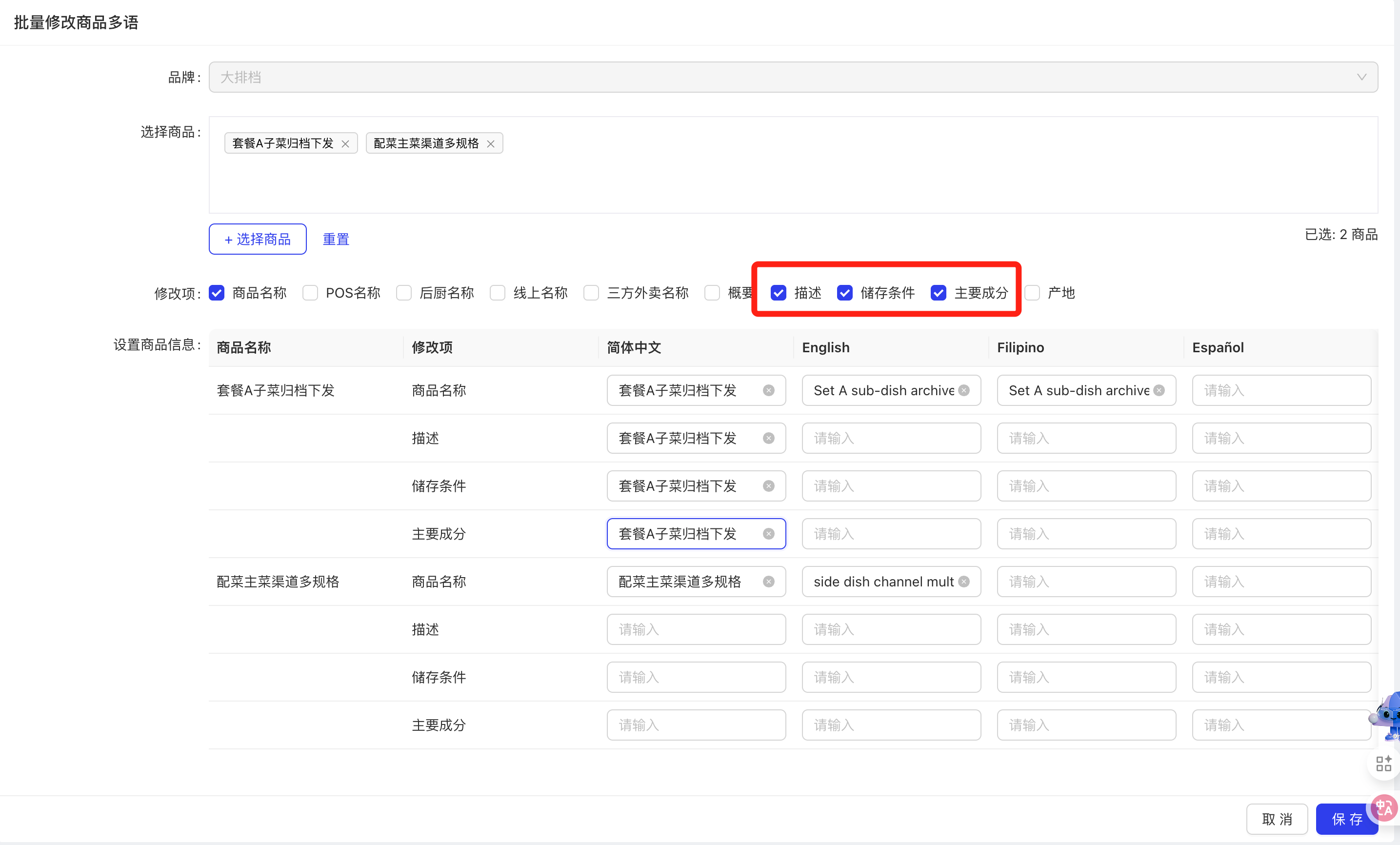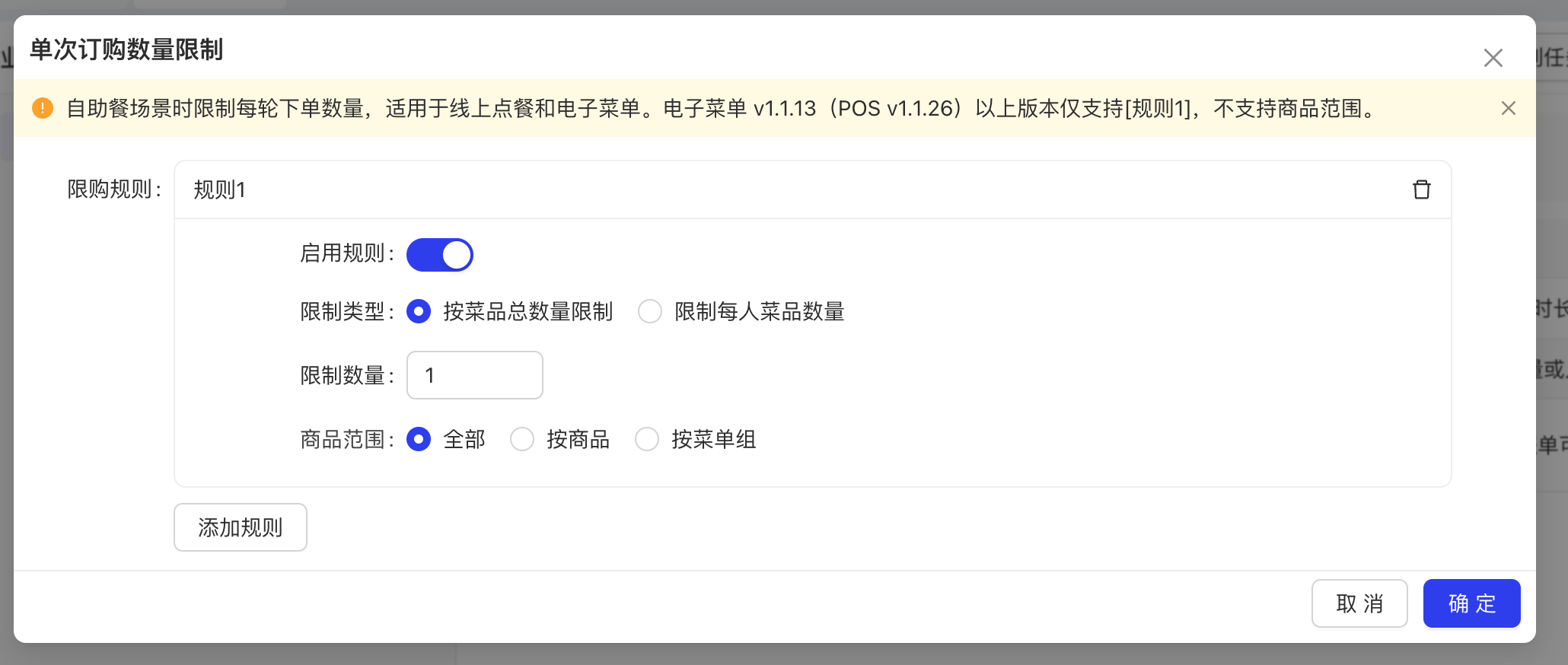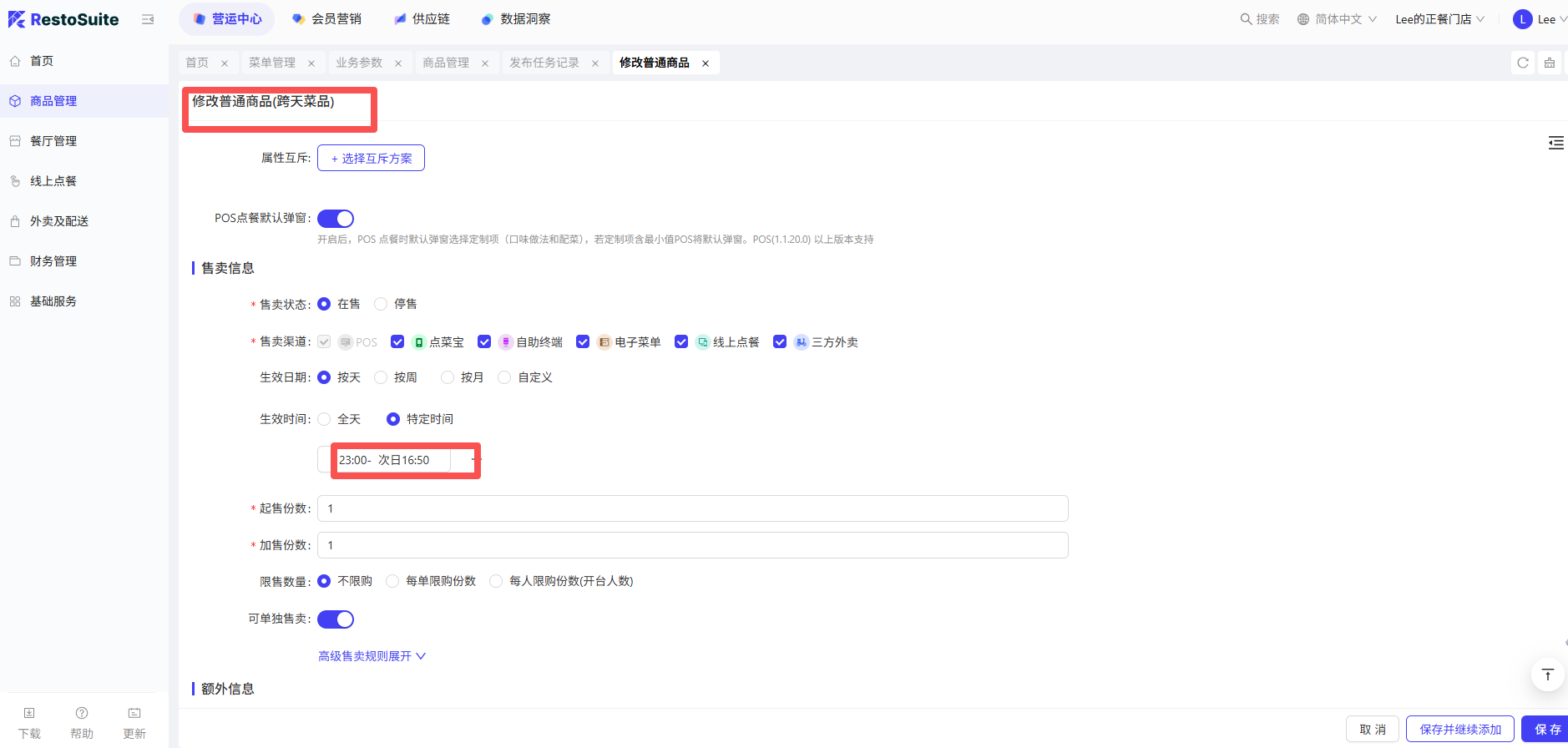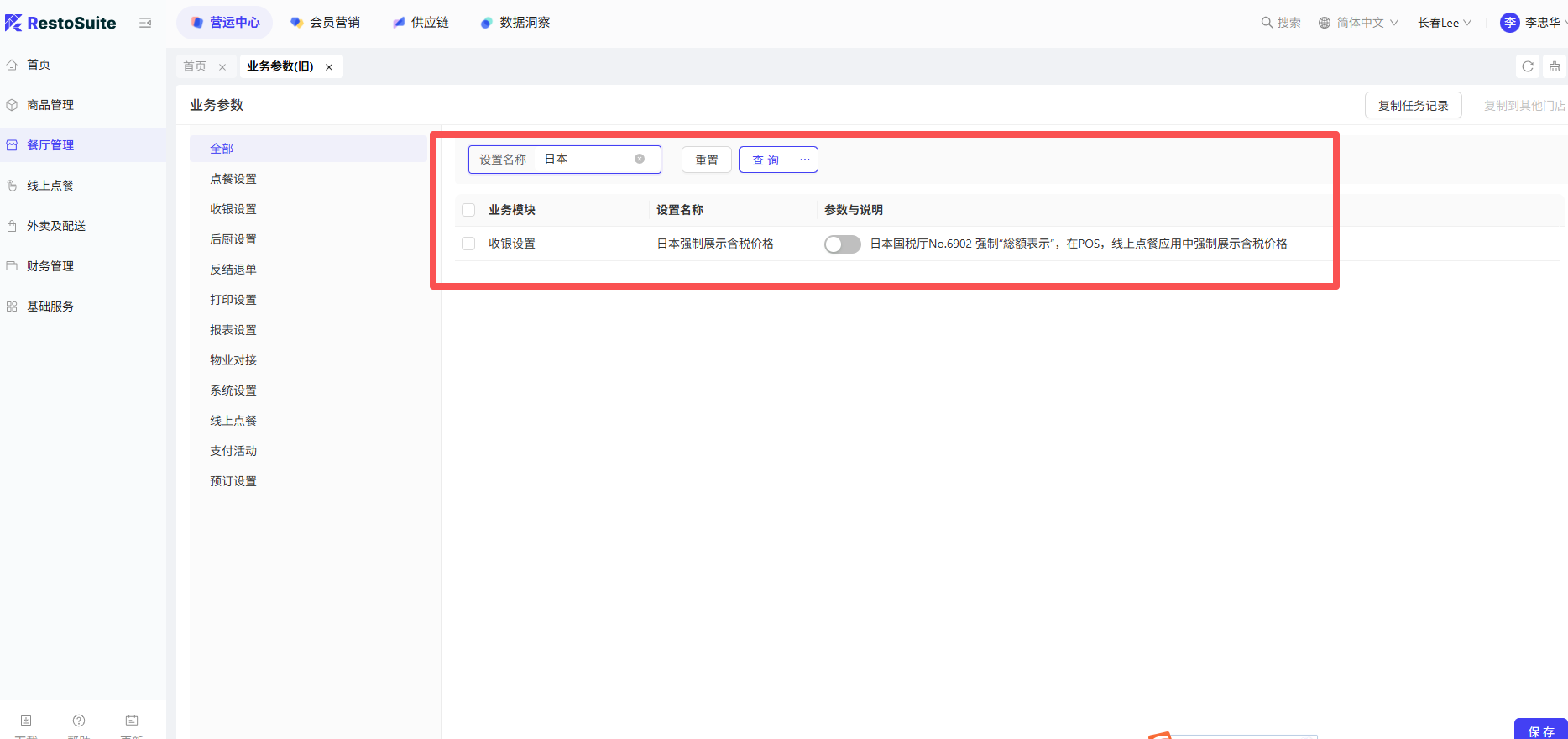- 功能路径:餐厅管理-模版管理-通用组件-菜品组件-业务参数