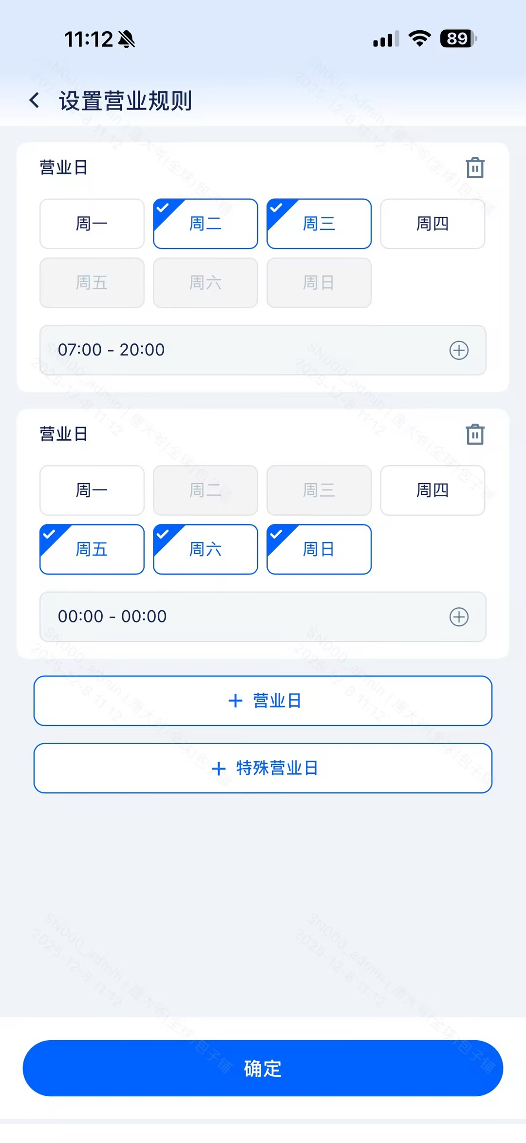 - 支持日历设置,可维护休息日/工作日/节假日,添加自定义标签(例如店庆)