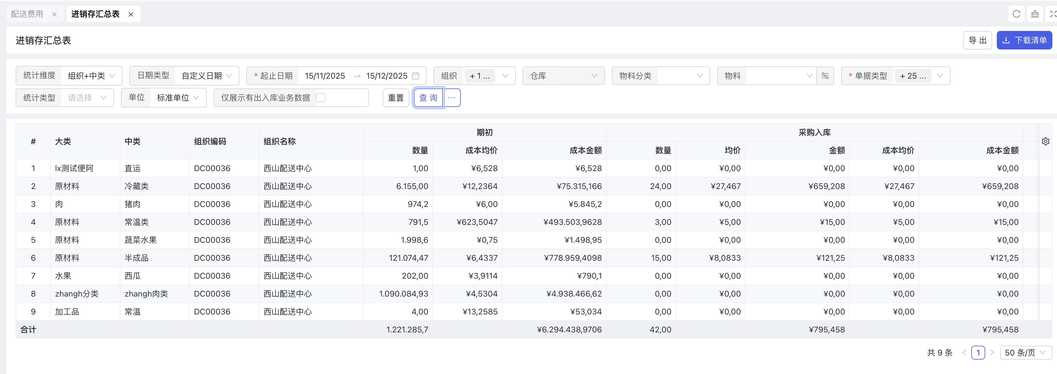 13.5 进销存汇总表增加物料大类,中类,小类统计维度