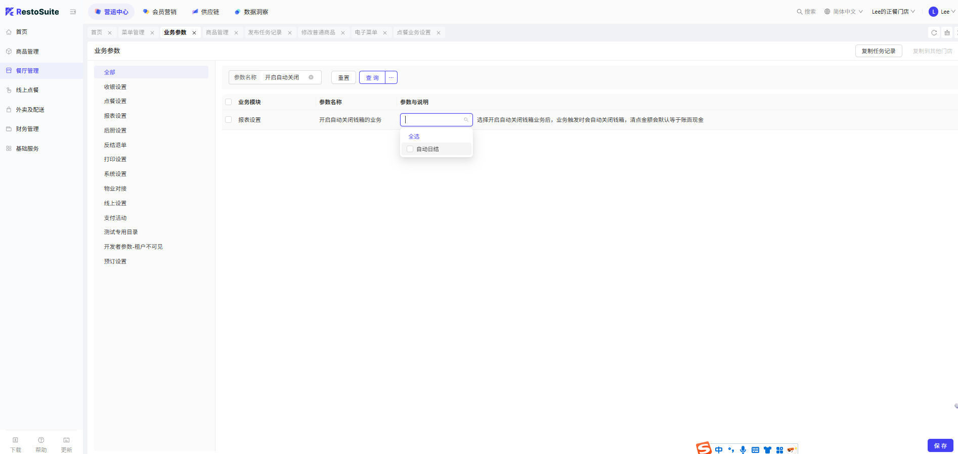 - 功能路径:自动日结 + 关闭钱箱