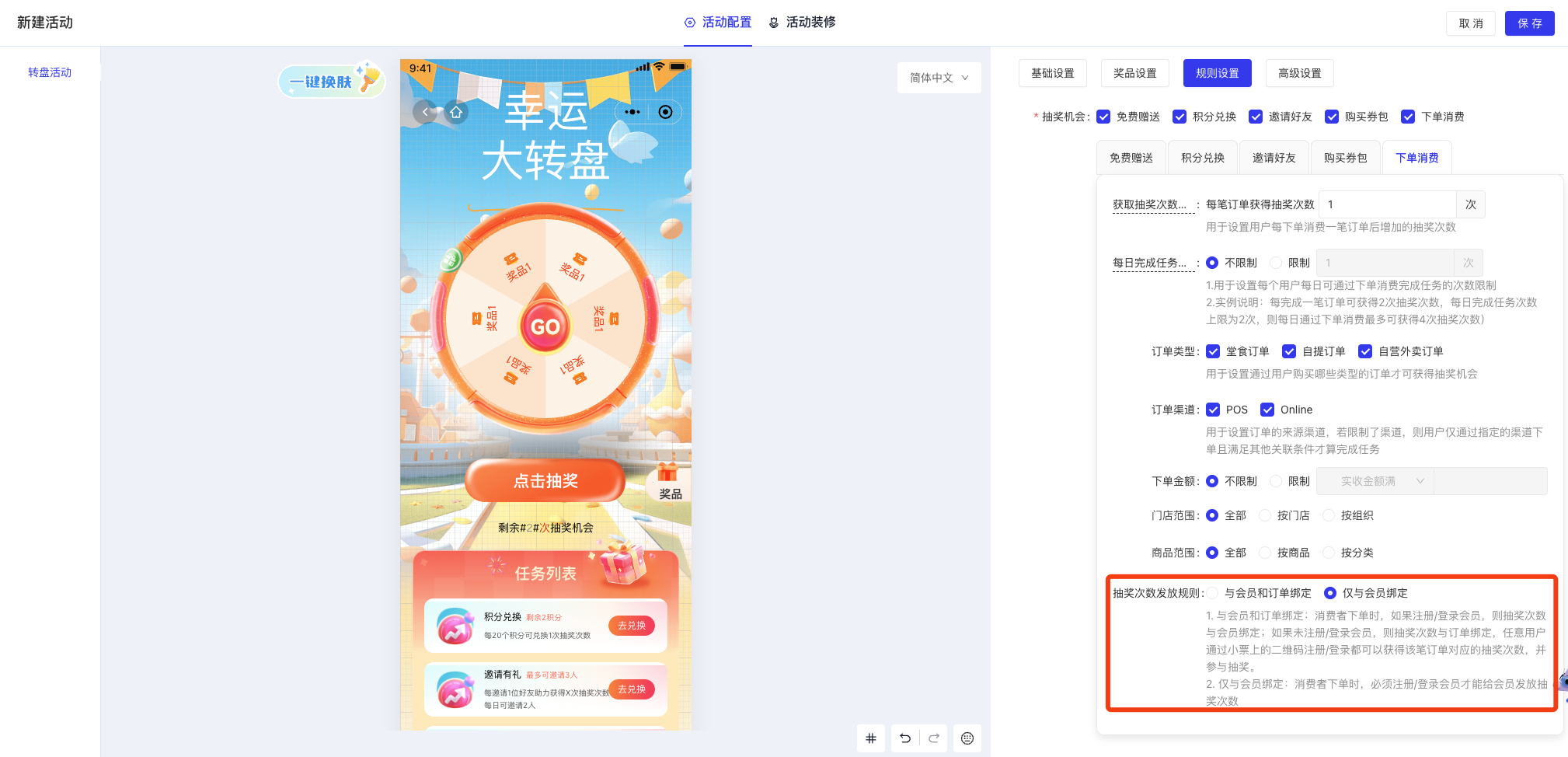 - 功能路径:餐厅管理-模版管理-礼品卡购买、礼品卡储值、会员储值