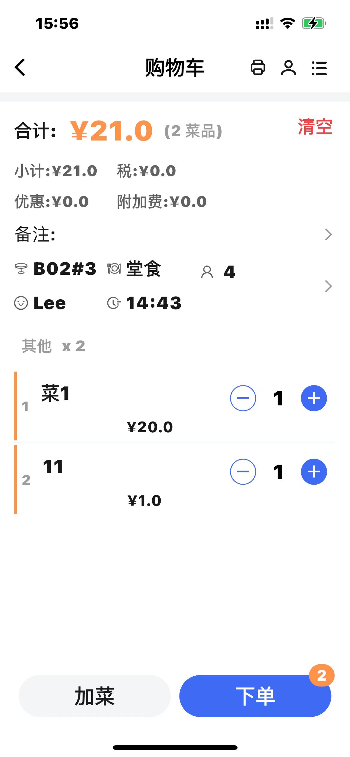 - 使用场景:临时菜点菜