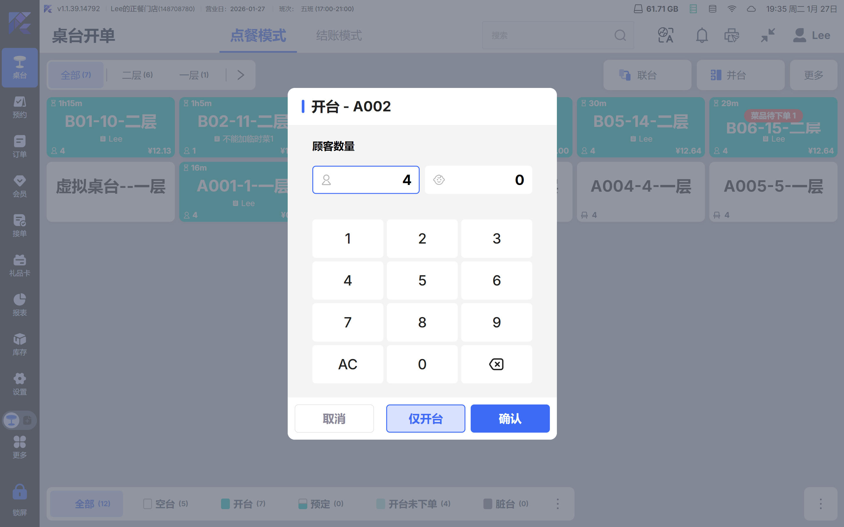 - 支持[仅开台]功能,开单时,仅开台则是仅开台,不进入点菜界面;