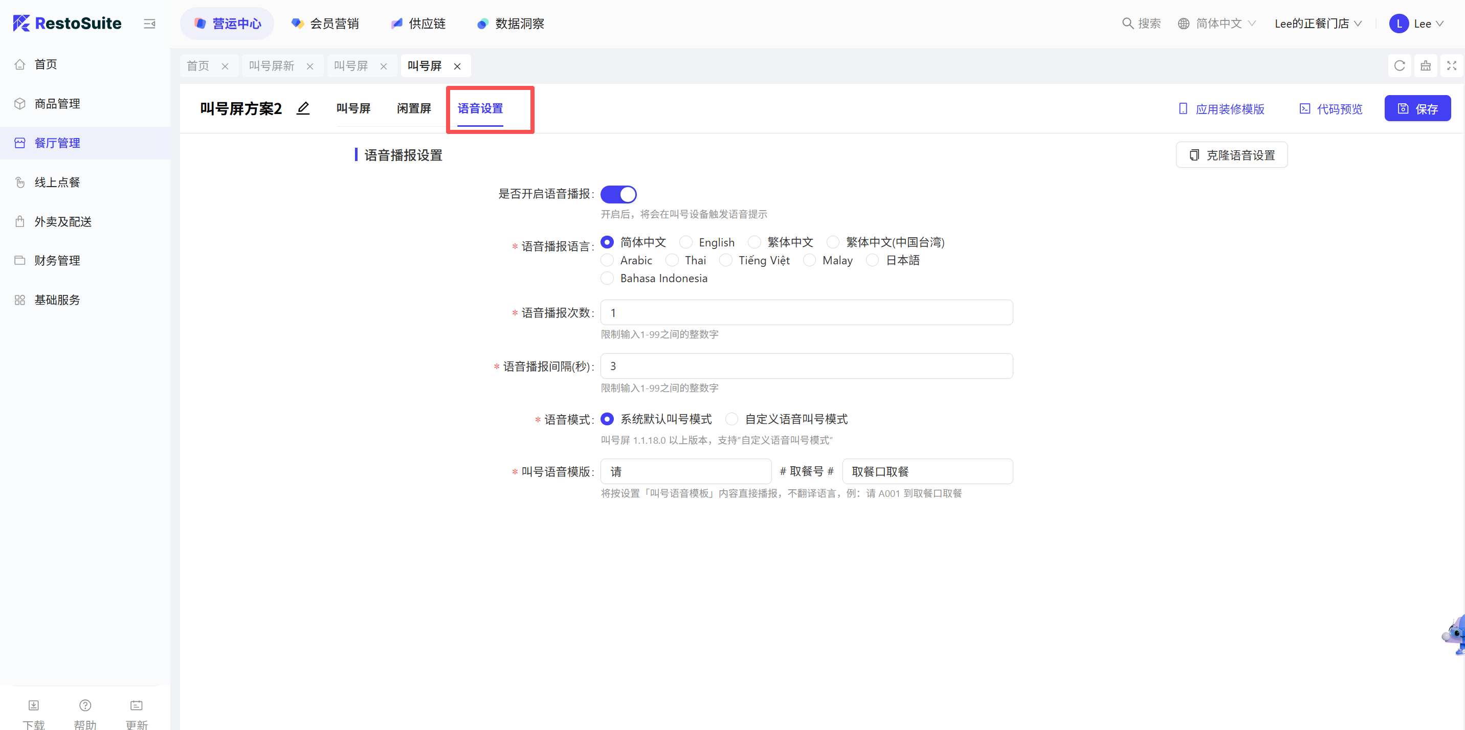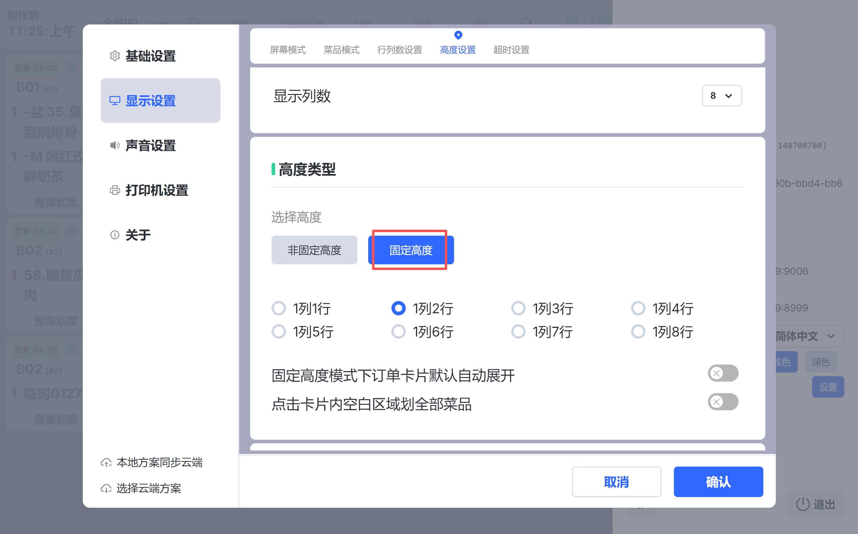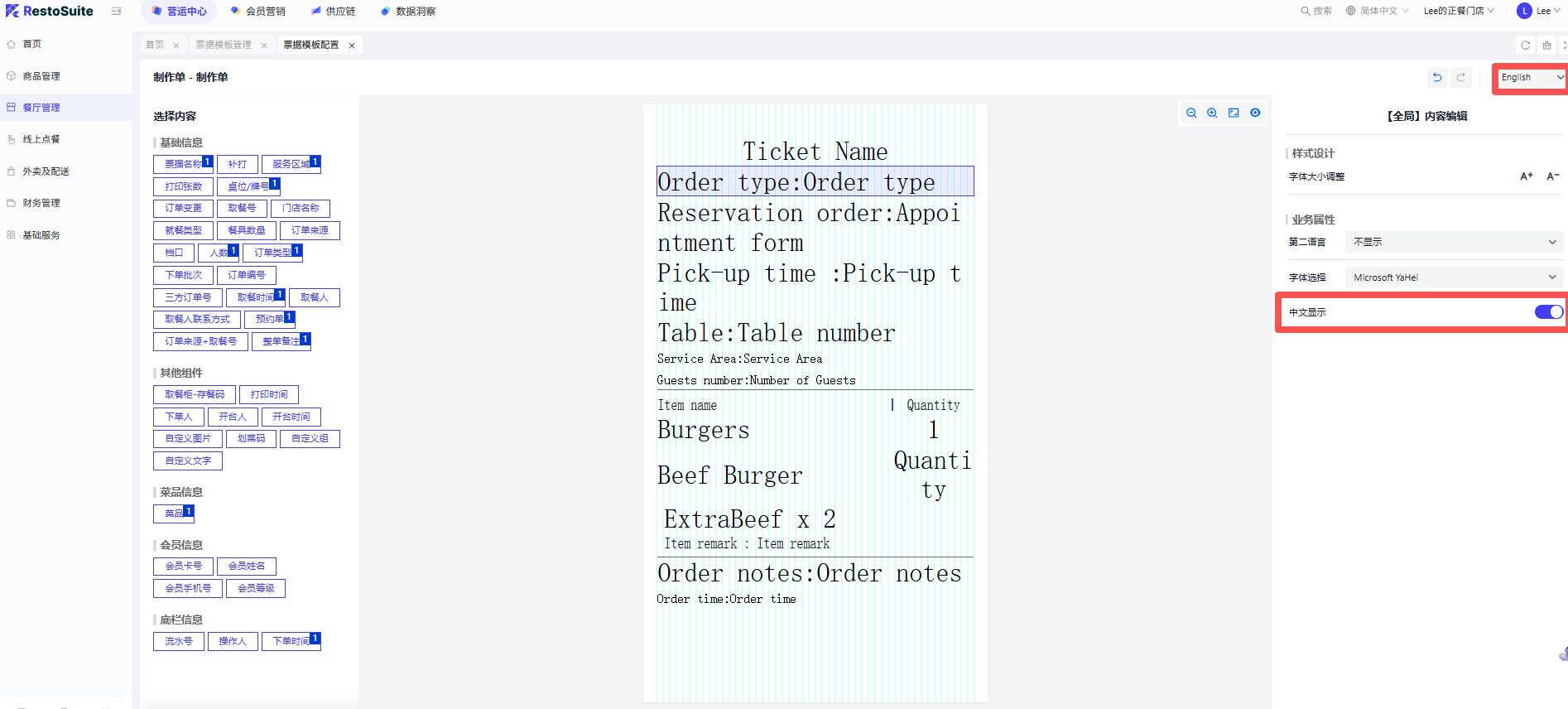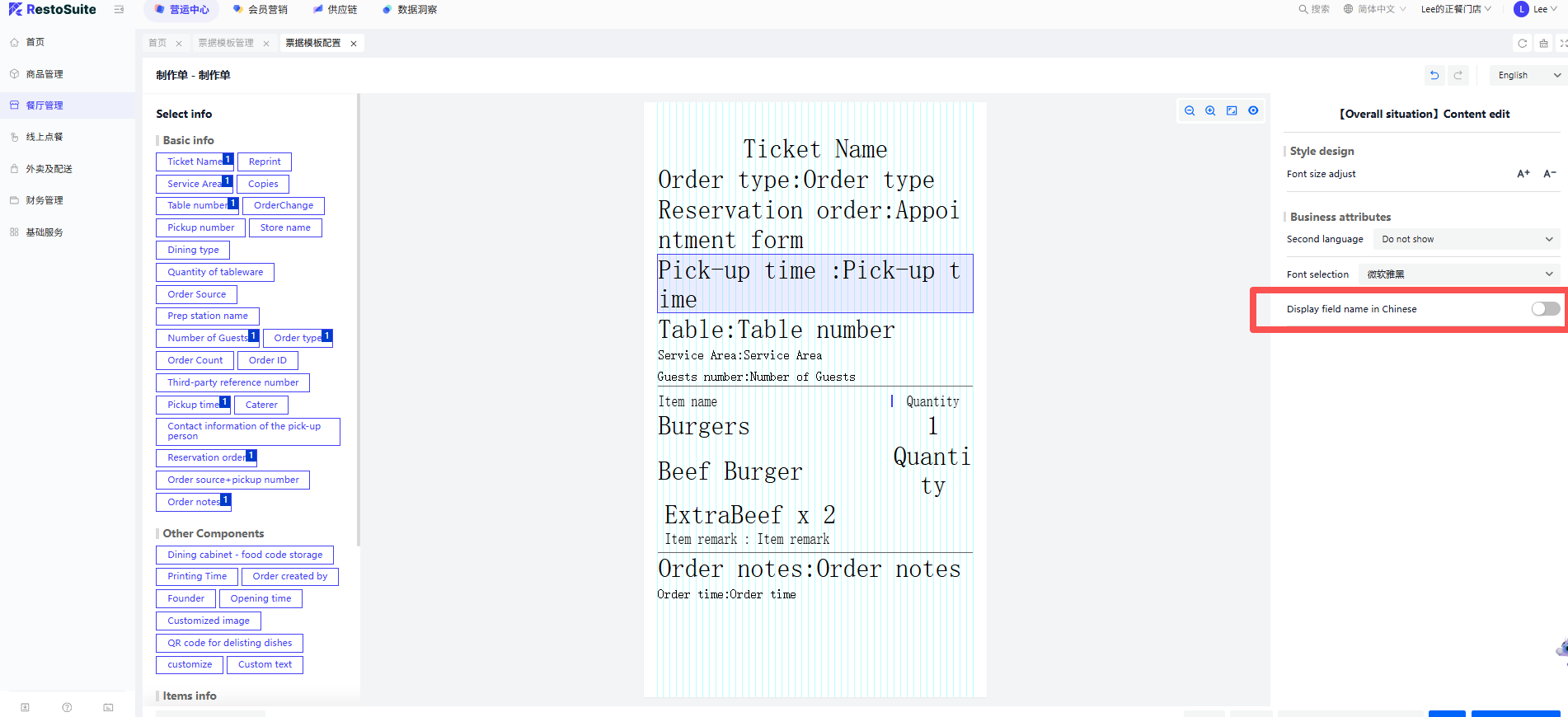 - 参数:购物车选中菜品在菜品操作界面默认选中 默认:关闭;