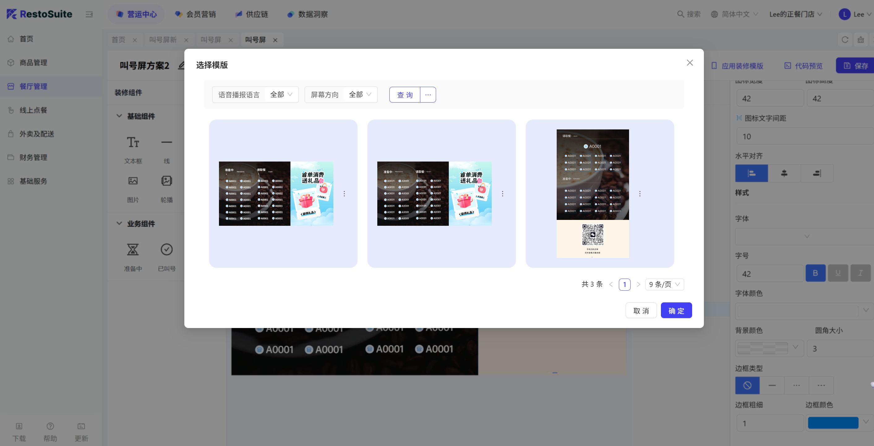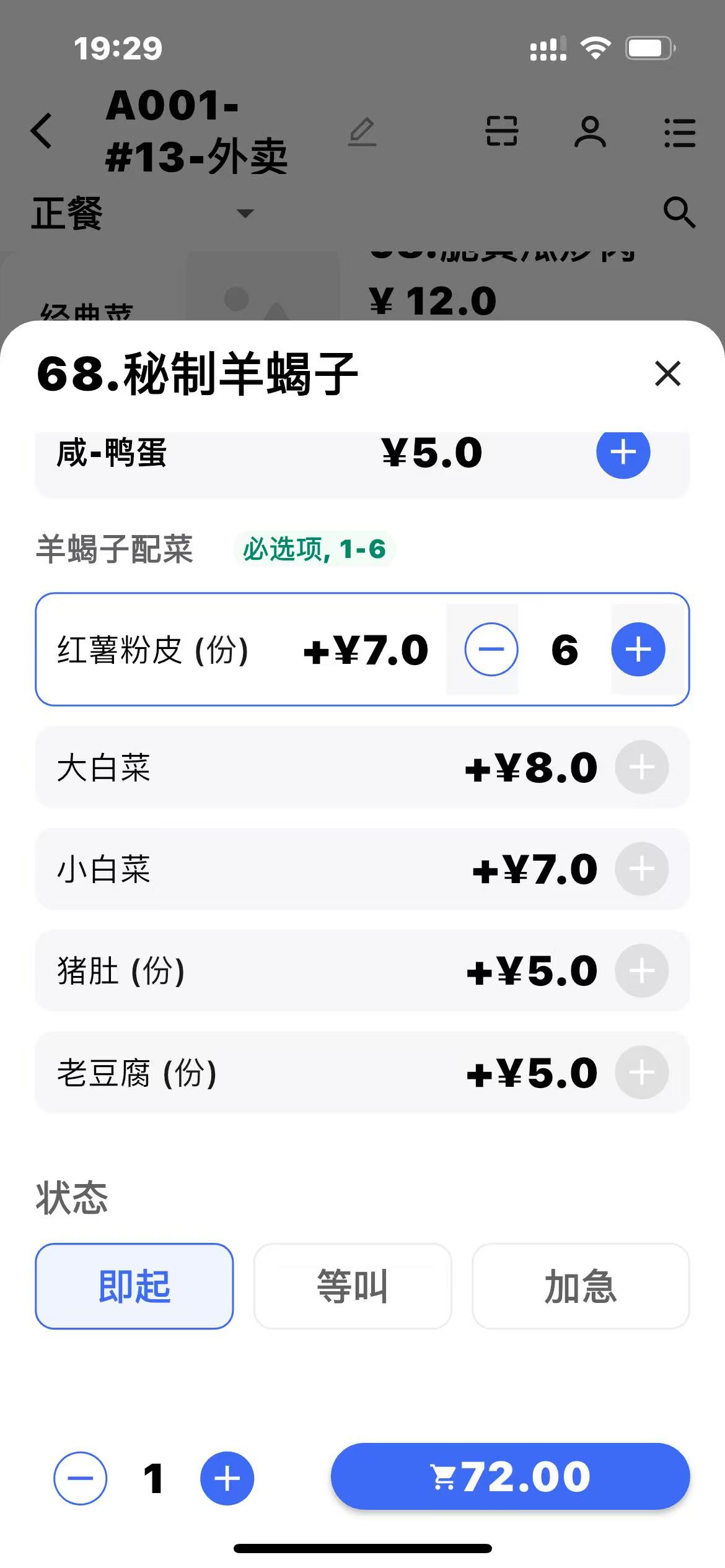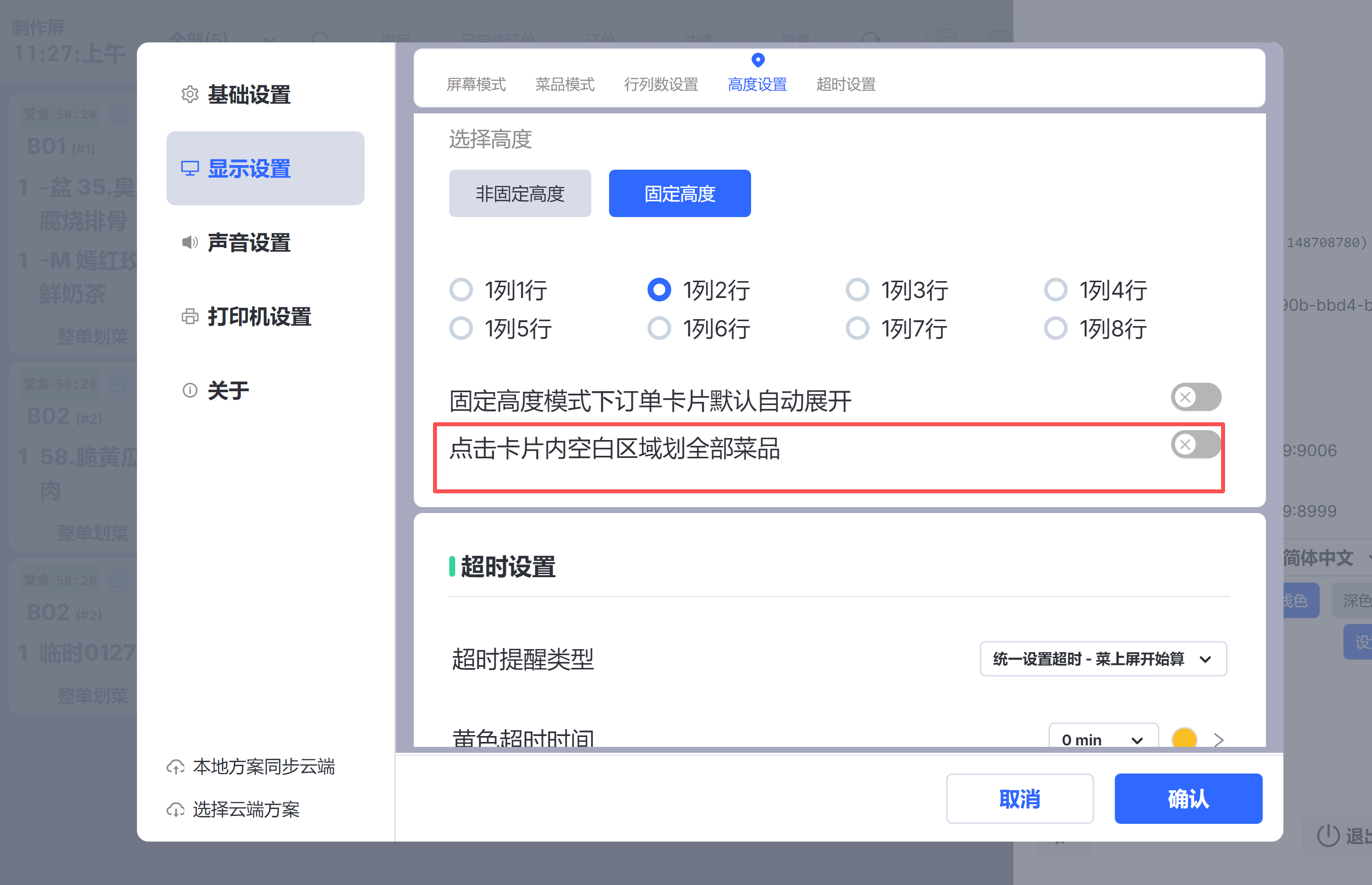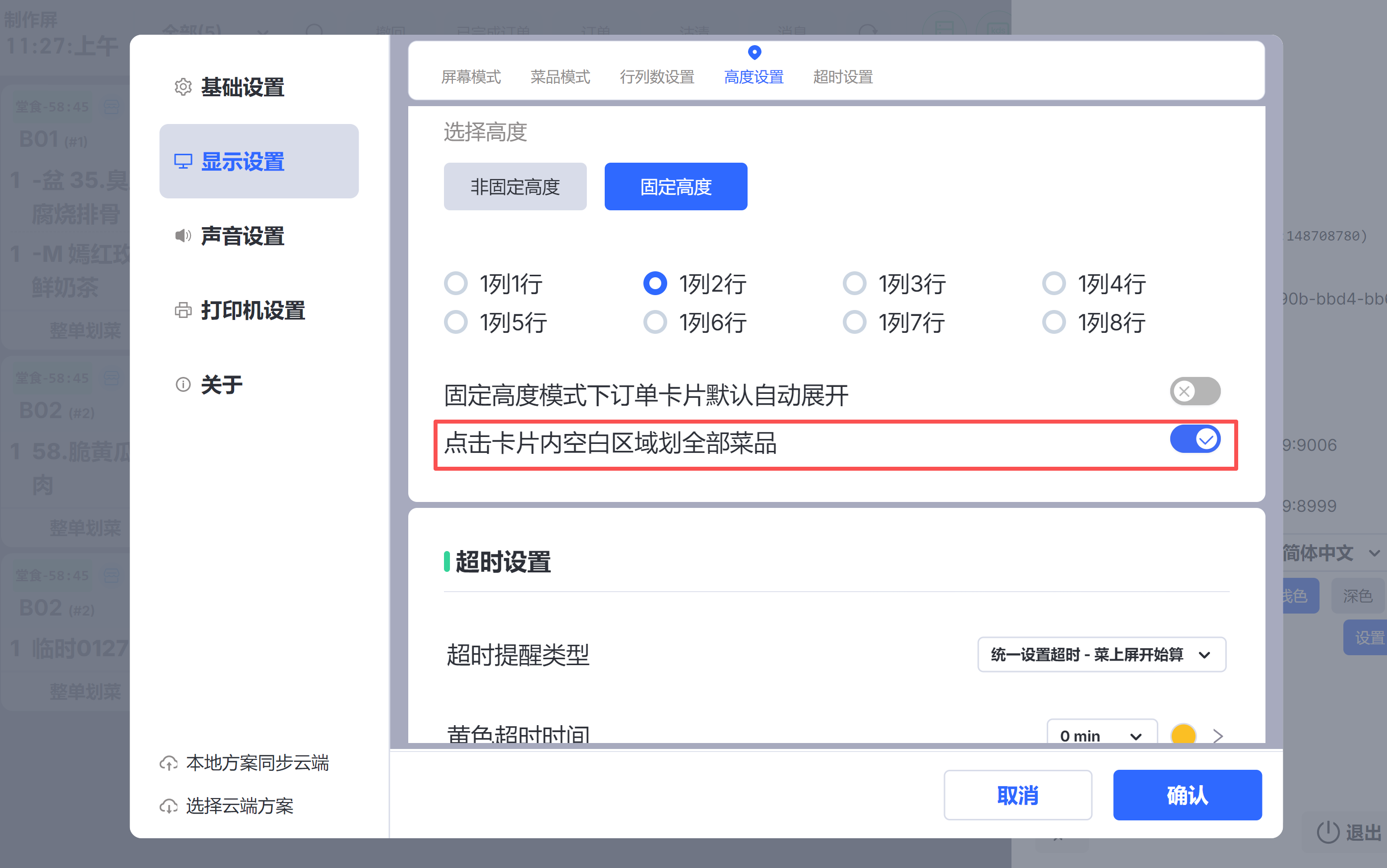 - 参数打开后,购物车选中的菜品,在退菜、赠菜、催菜、转菜界面默认选中;