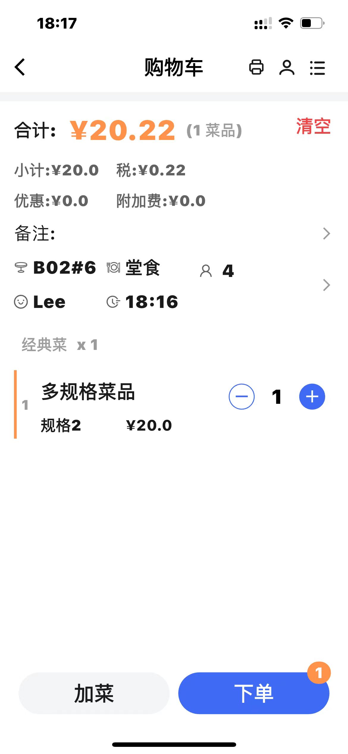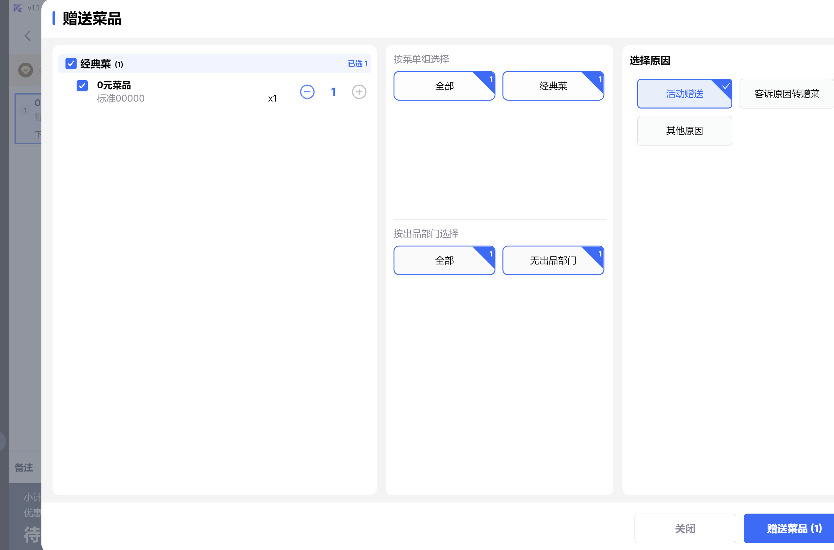 - 0元菜品支持赠送及赠送后的菜品支持拆单;(v1.1.39.14801)