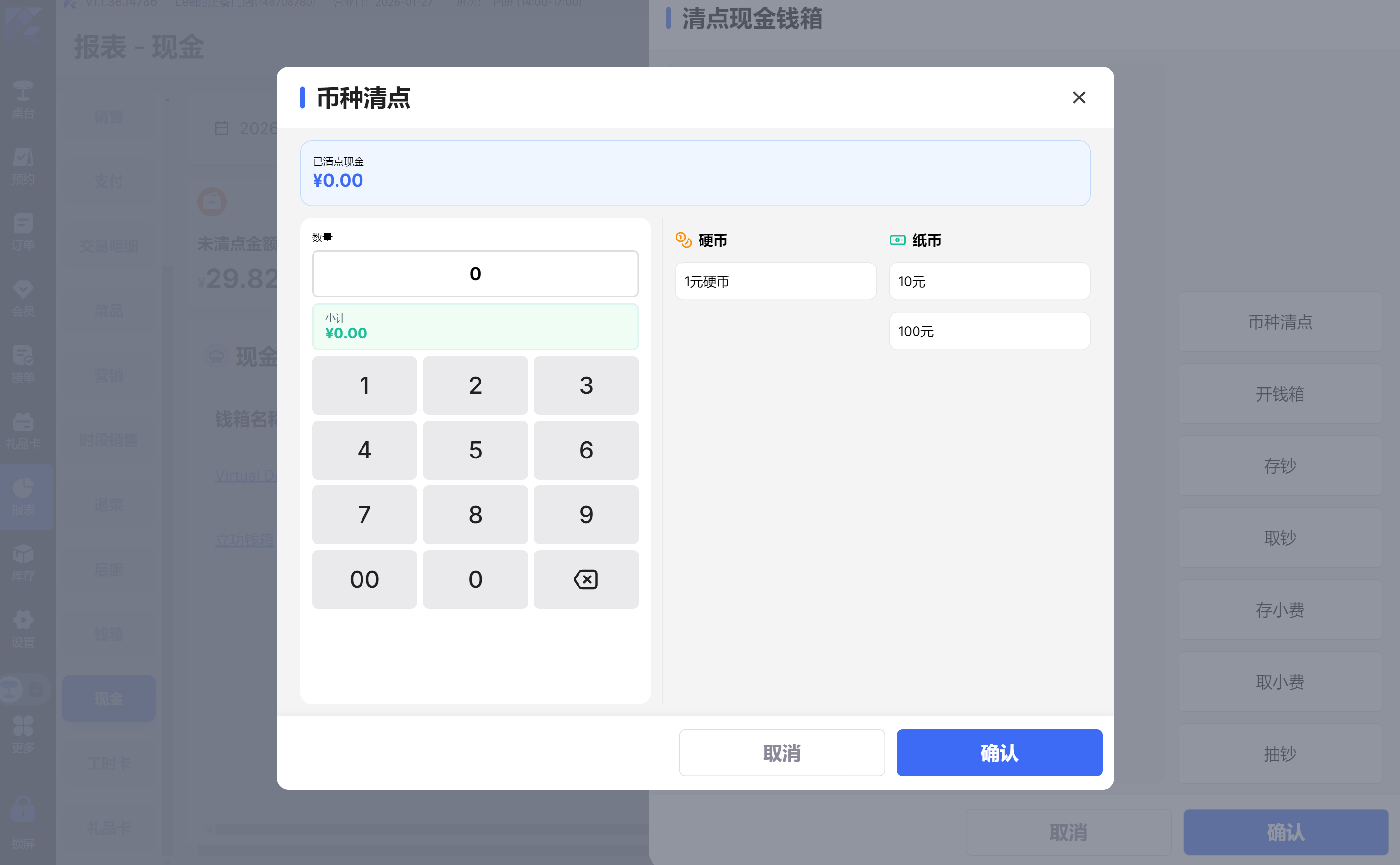 - 如门店币种在OM平台有配置面值,则会显示币种清点按钮