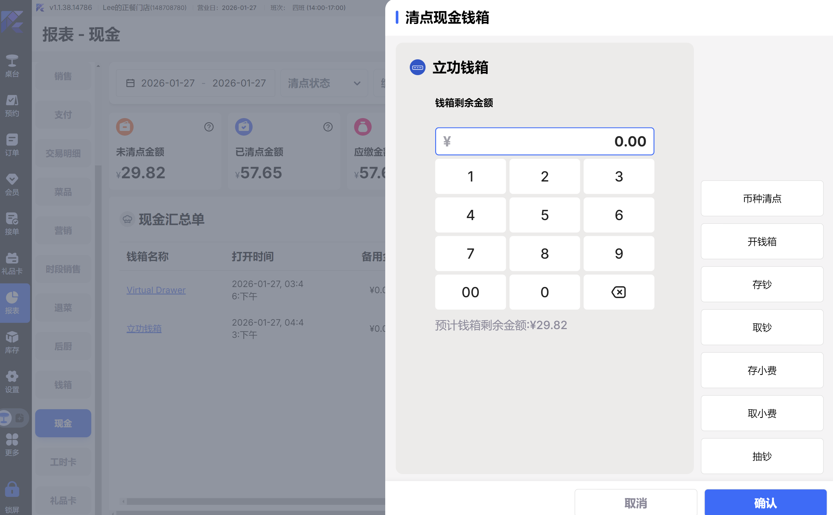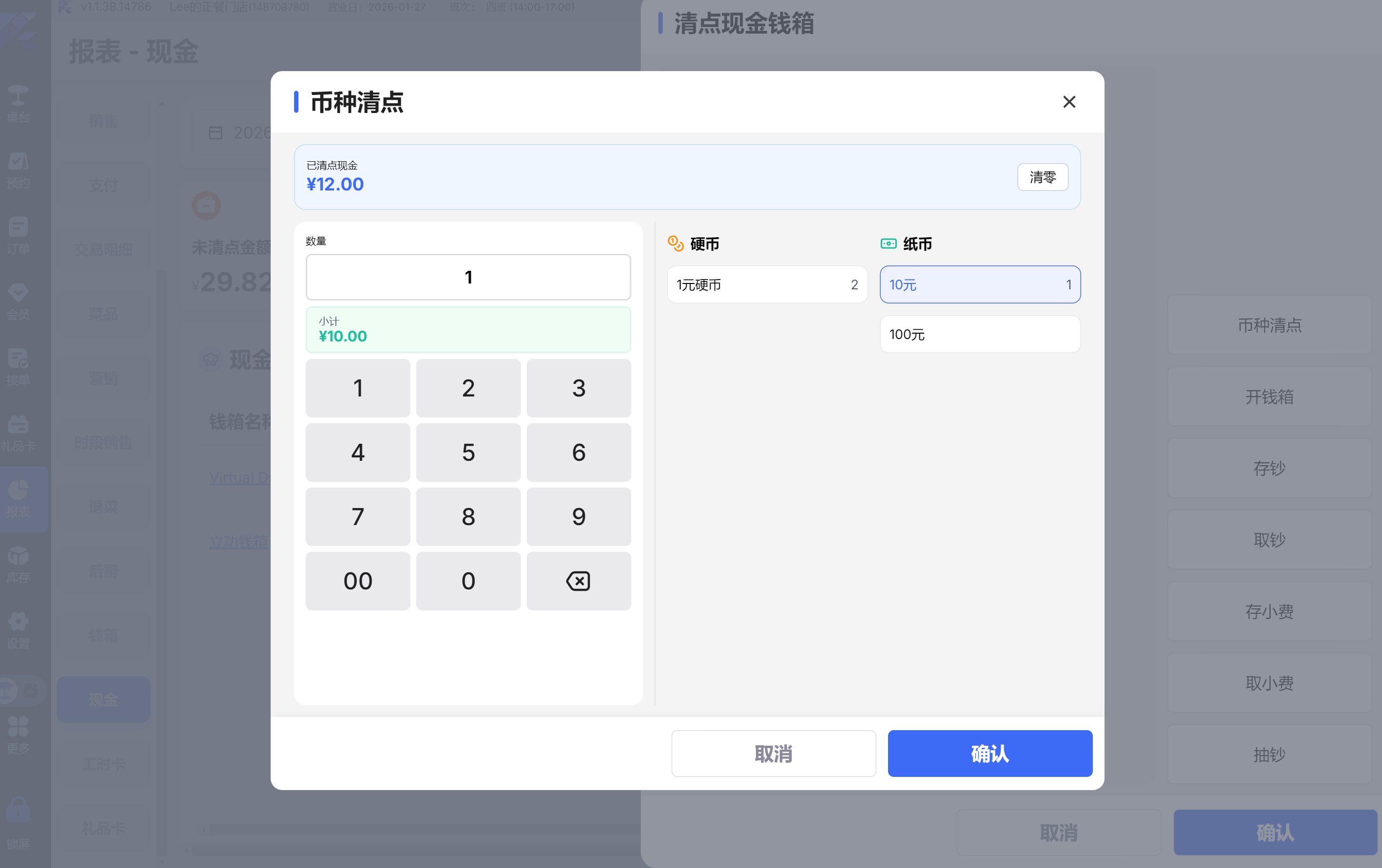 - 功能路径:钱箱清点
