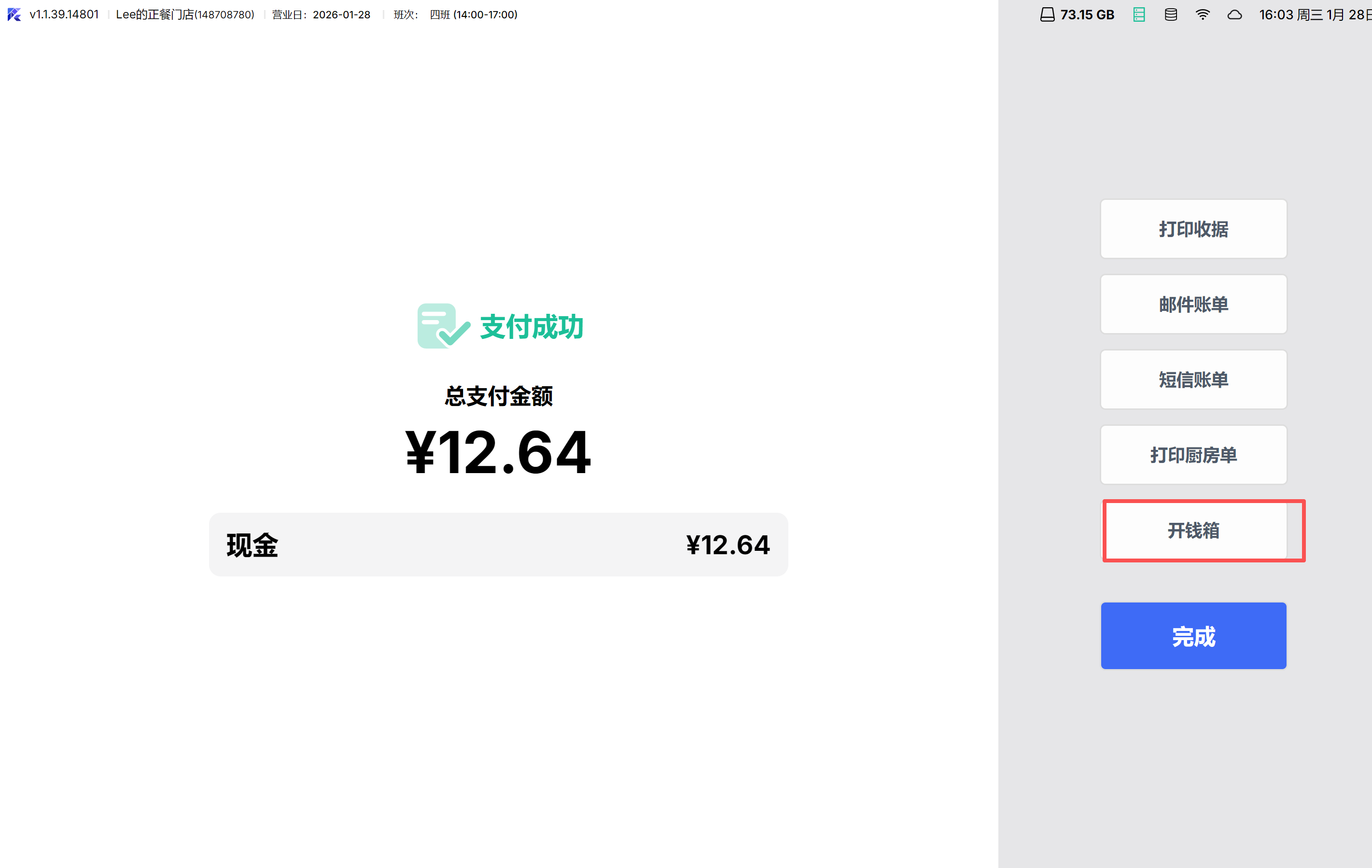 - WINPOS-结账完成页:增加 开钱箱 按钮,有权限的可以随时打开钱箱;