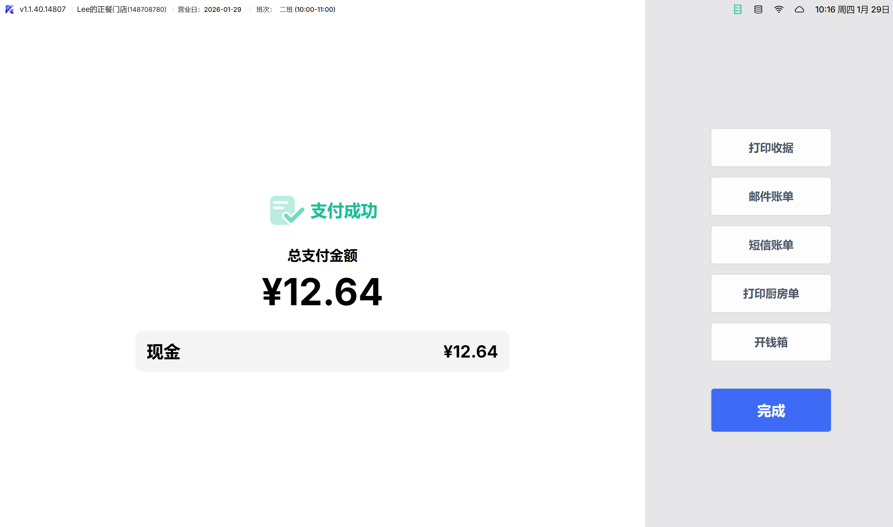 1.1 副屏的结账完成页支持客人自助打印及发邮件账单