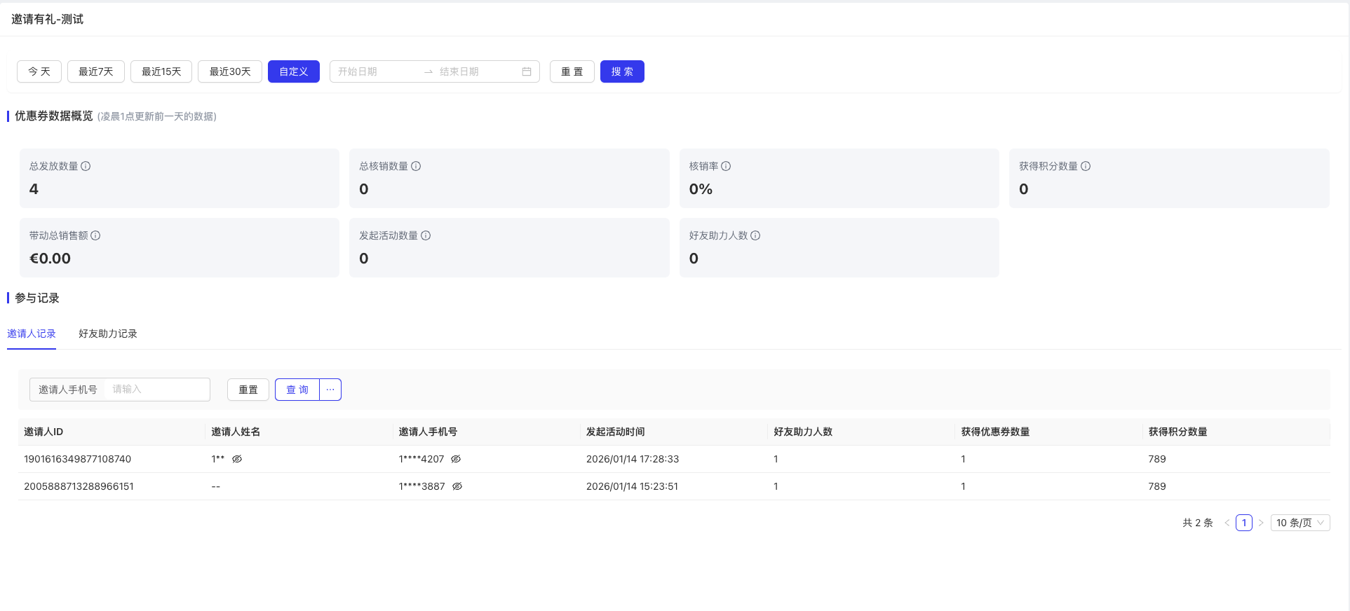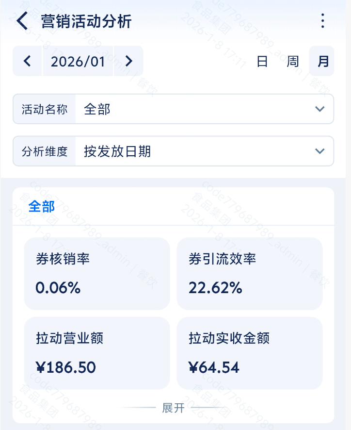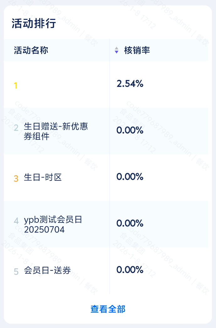 - 使用场景:查看各项券营销活动效果