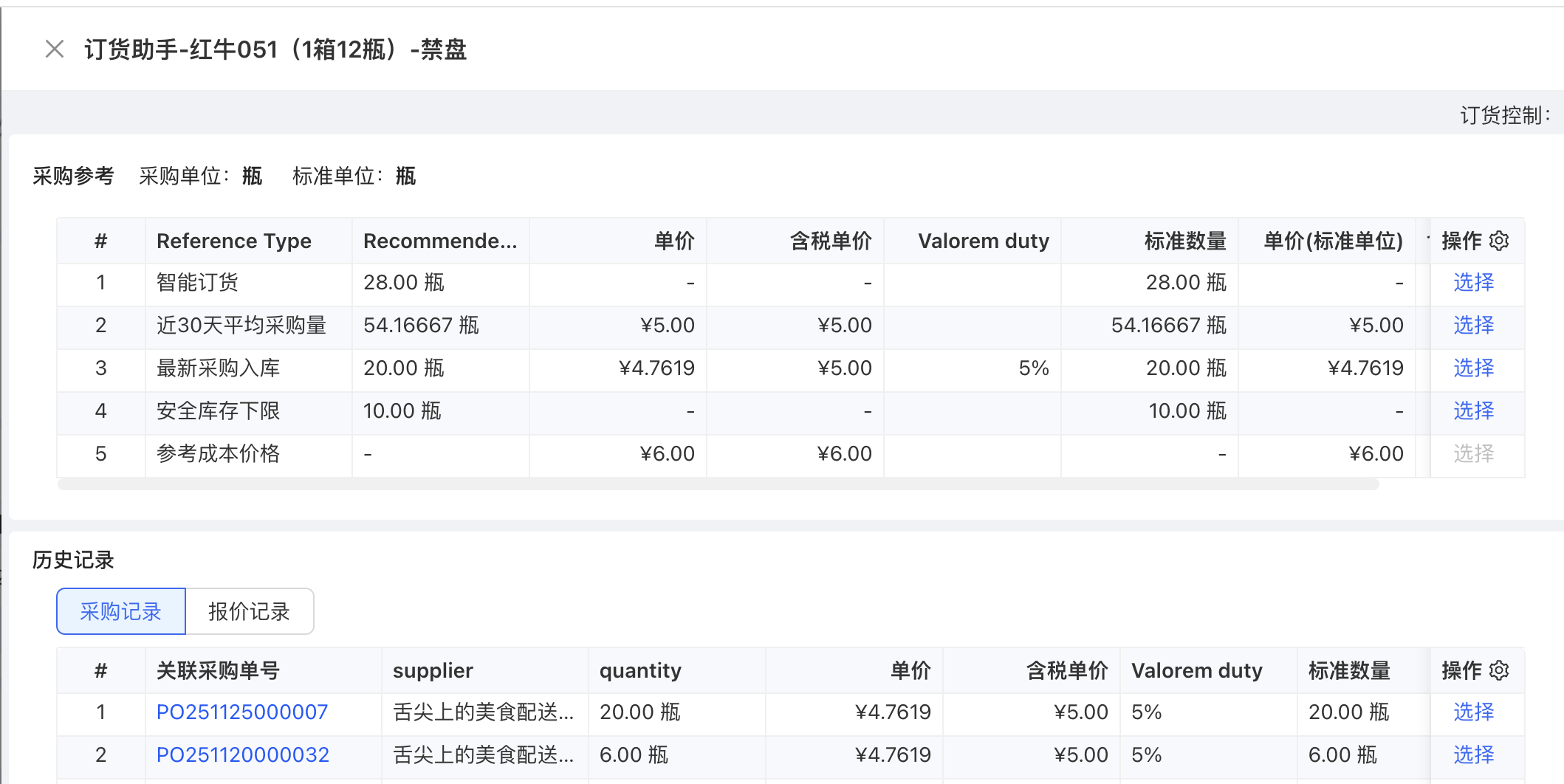 - 订货助手-采购参考,选择支持带入数量、价格、数量+价格,并重新计算