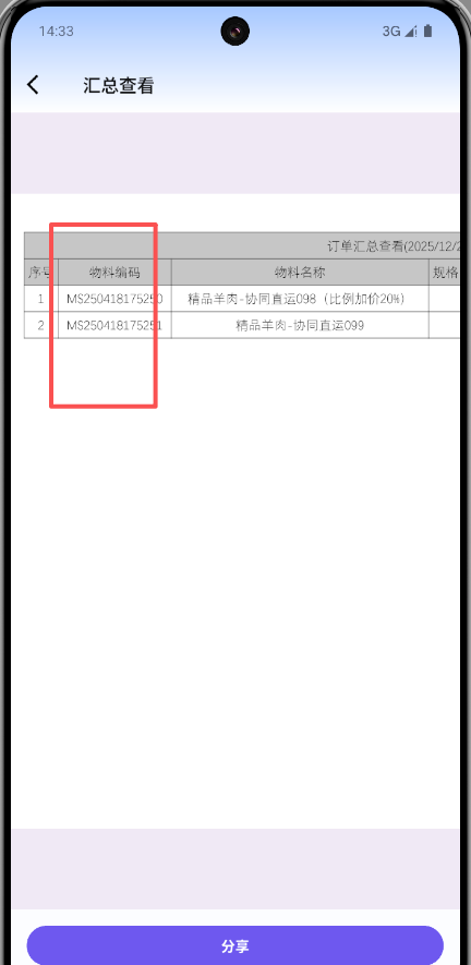 - 协同订单,分享表格,新增物料编码字段