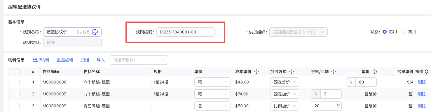 12.4 配送协议价-支持规则编码录入