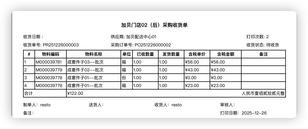 12.3 采购收货单-支持多批次合并打印