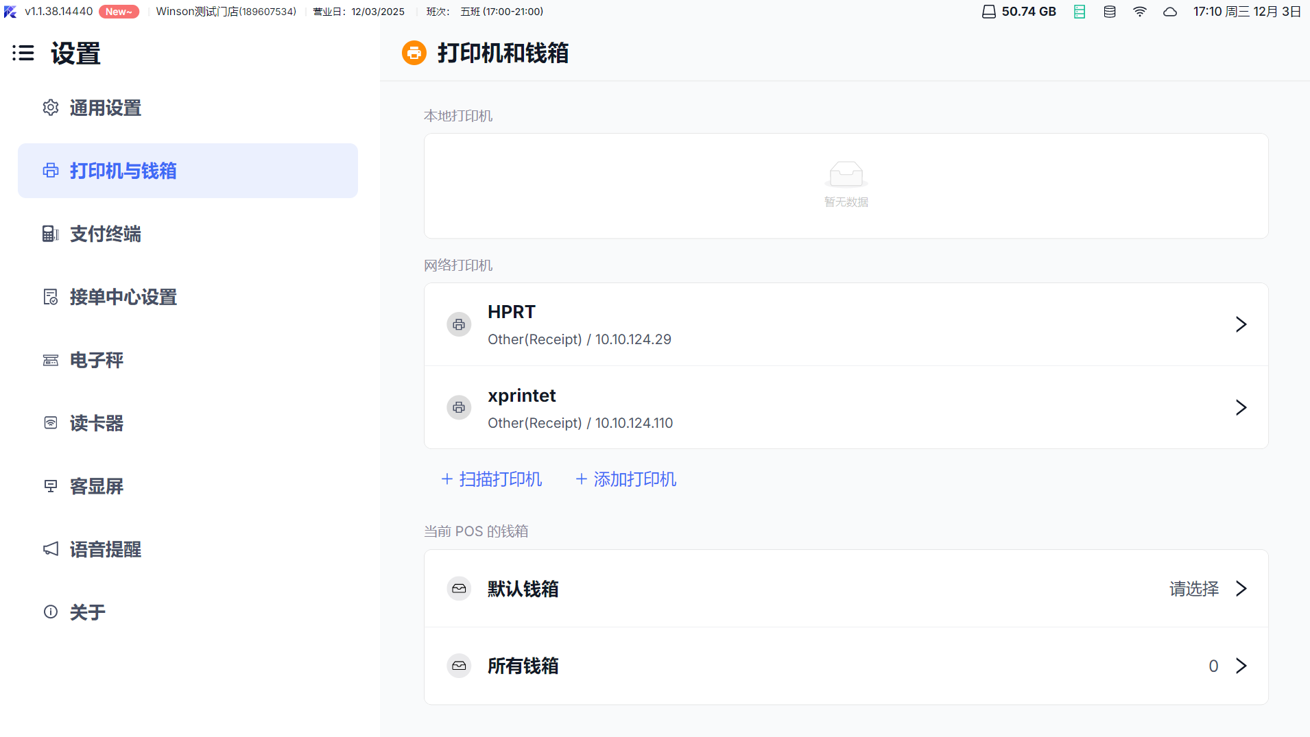 - 网络打印机:核对 IP 地址是否正确,确认打印机已连入门店局域网。