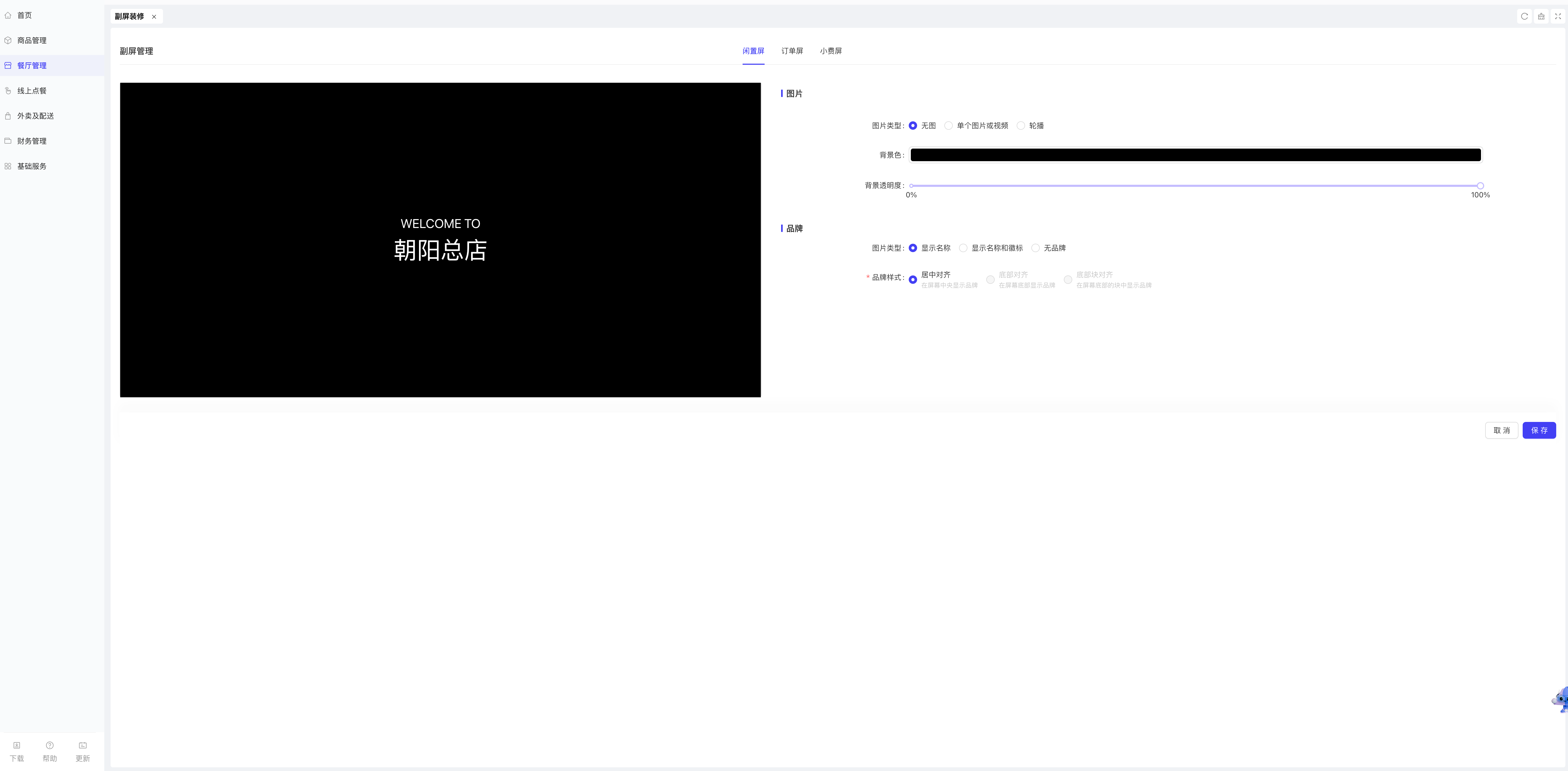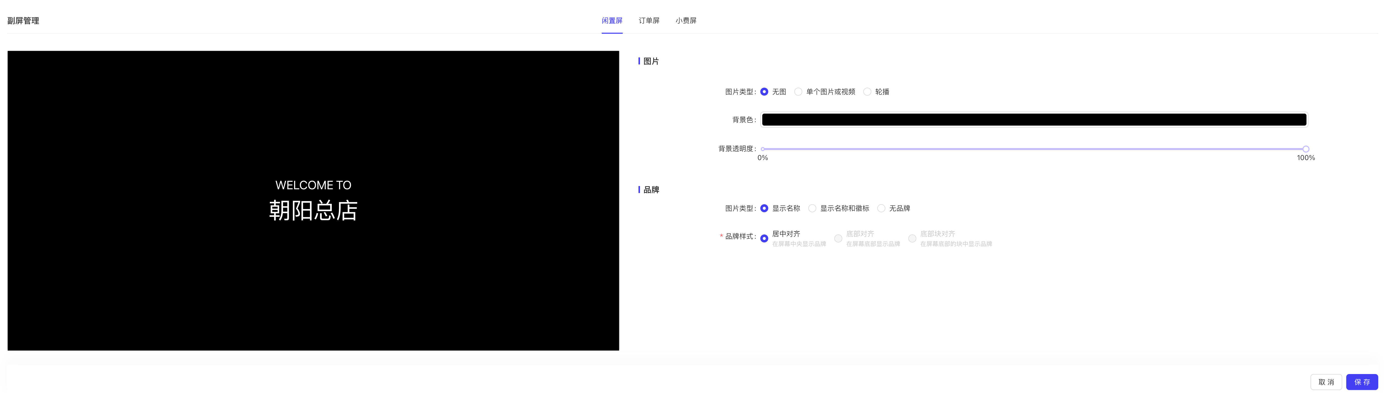 - 闲置时展示门店宣传内容:欢迎语、品牌 Logo、轮播图 / 视频等。