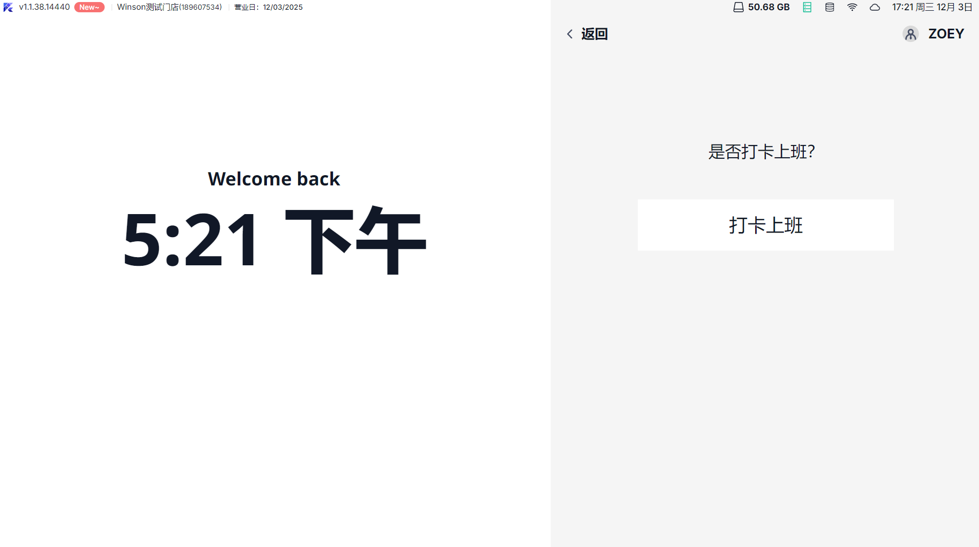 - 登录 POS 时,若未打卡,自动跳转至打卡页;