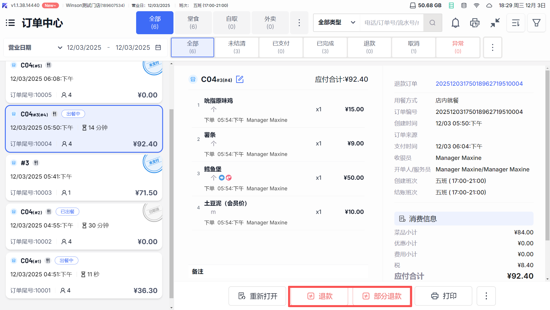 4.2 部分退款(退部分菜品 / 费用)