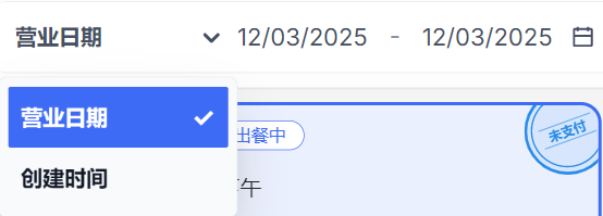 - 点击时间筛选框旁的「切换」按钮,选择 “营业日期”;
