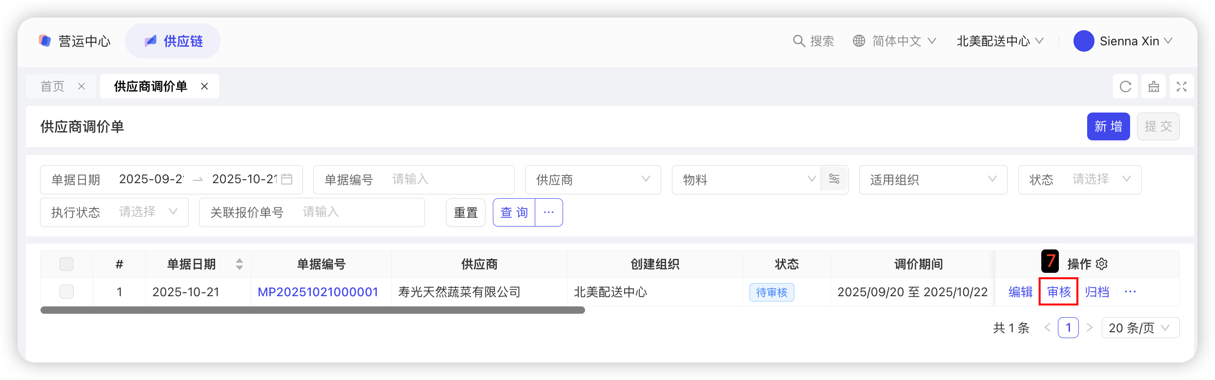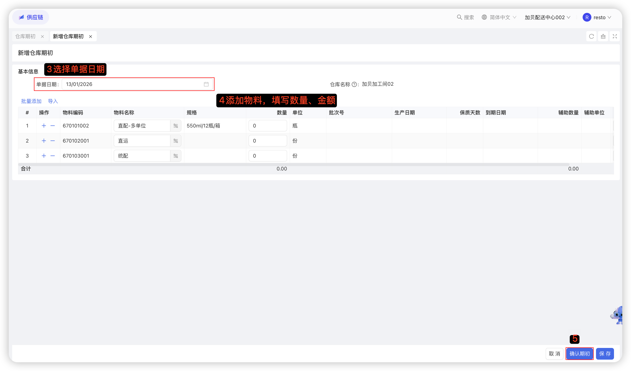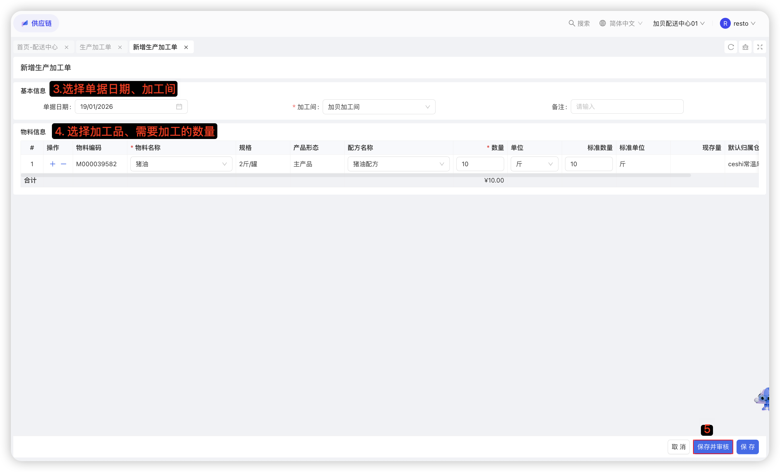 本功能用于记录配送中心采购员向外部供应商的采购具体物料的数量及价格,是采购的合规依据。