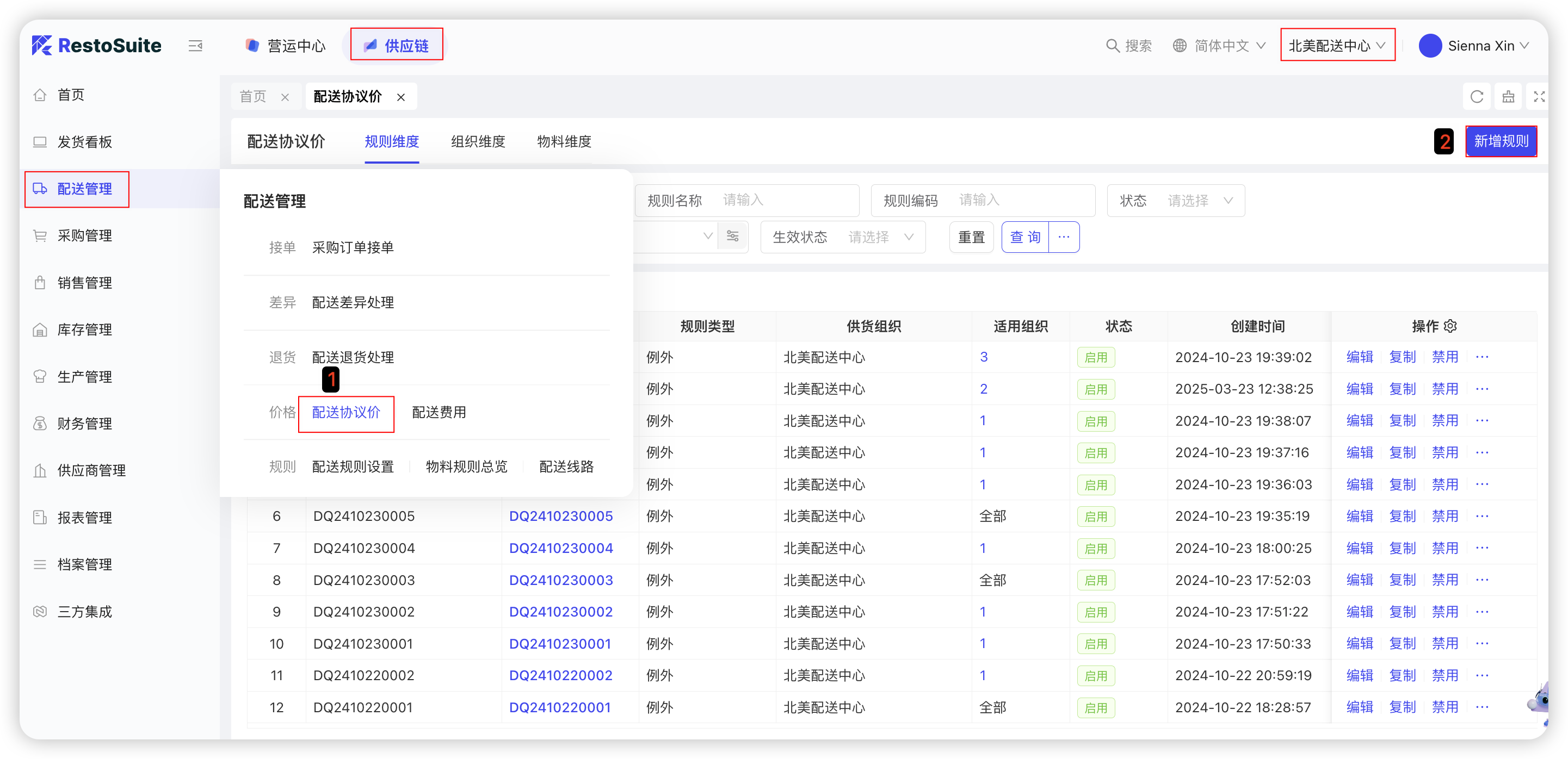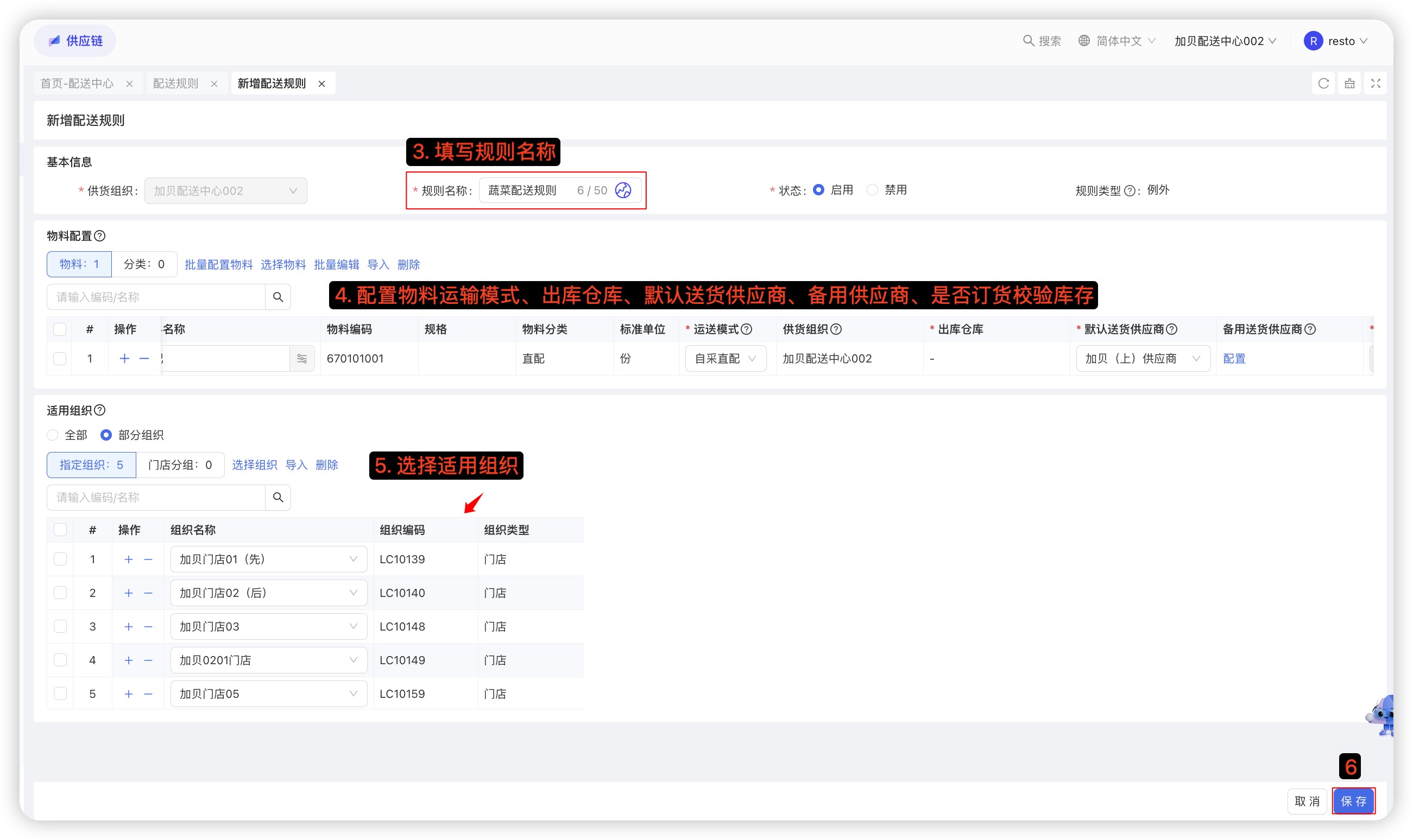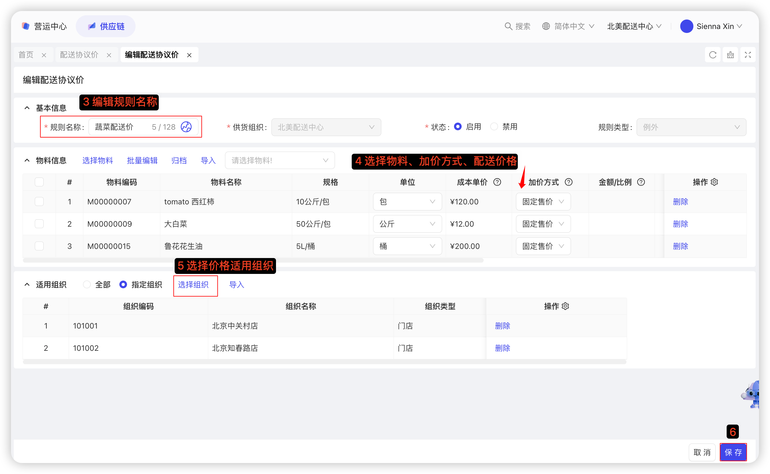 - 需提前定义好配送规则及采购价格;