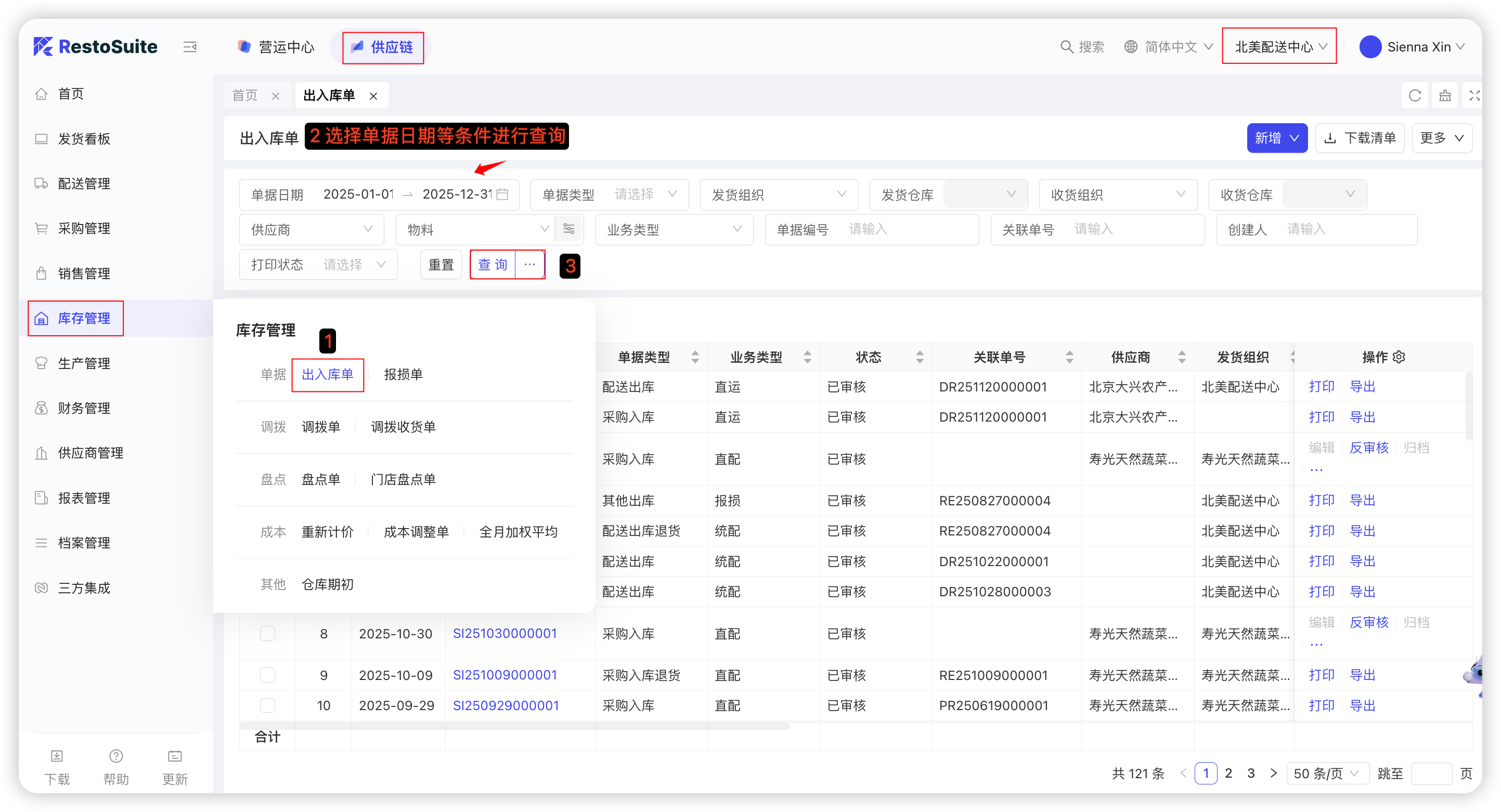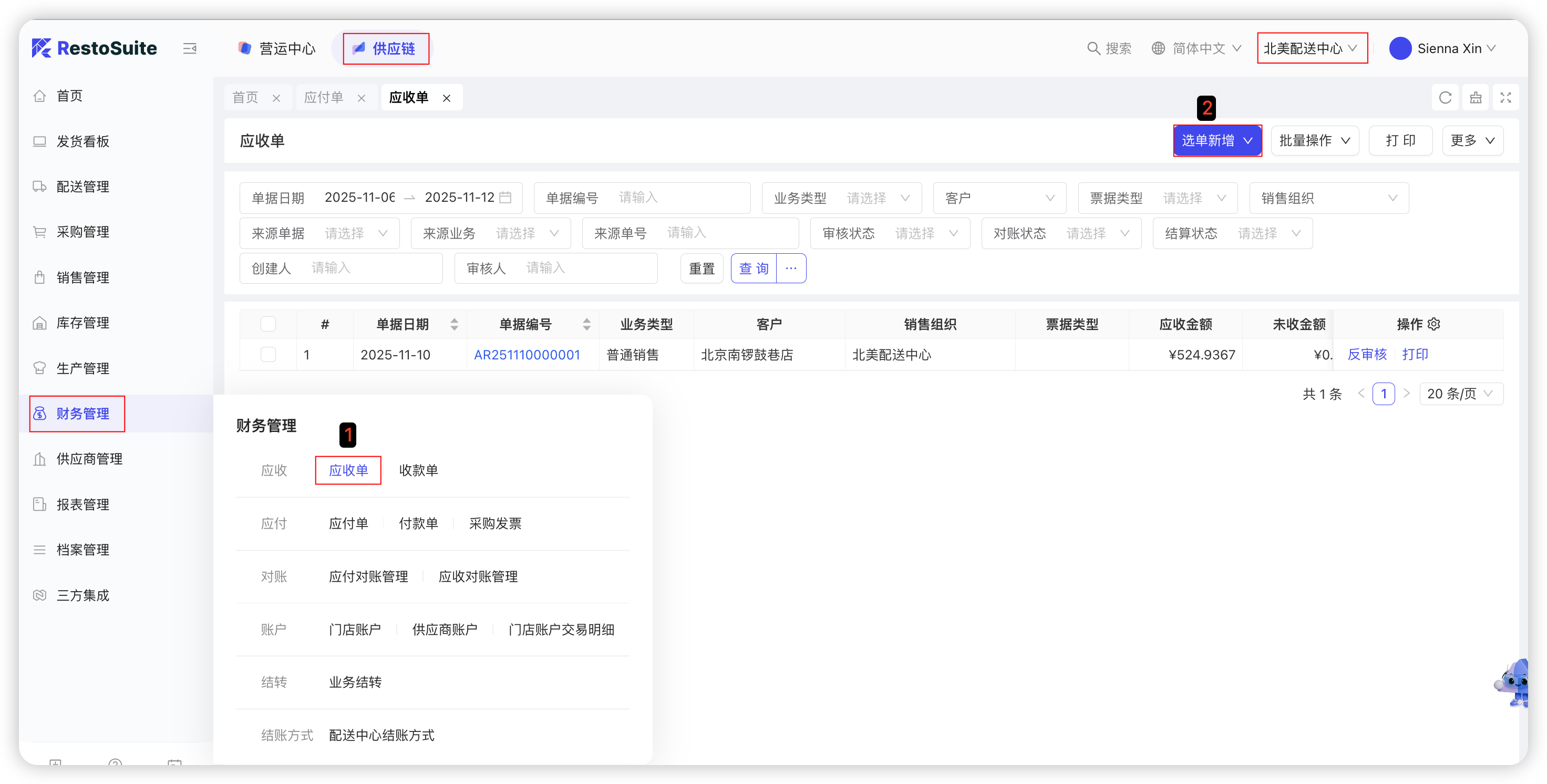 - “应收对账管理—批量生成应收单“可以按着时间段自动拉取配送出库单据批量生成应收单;