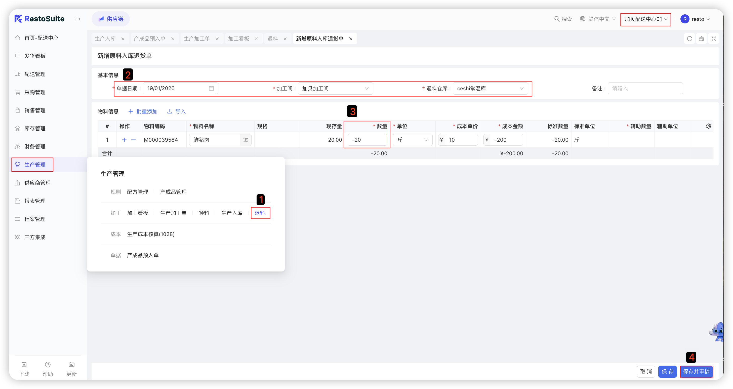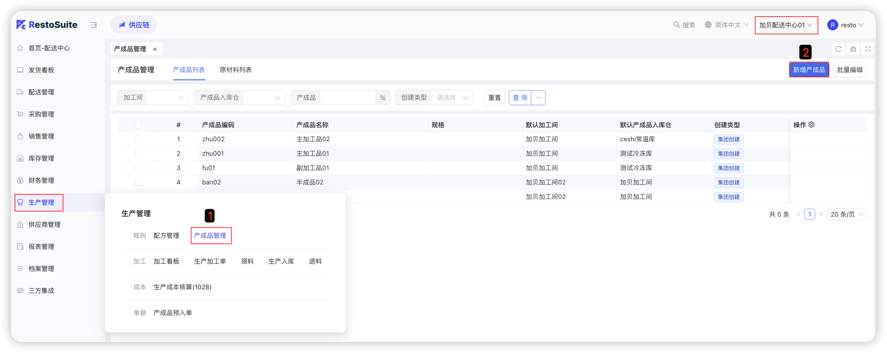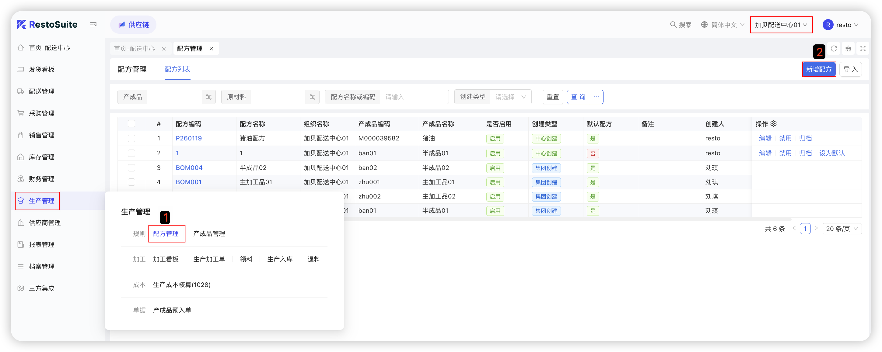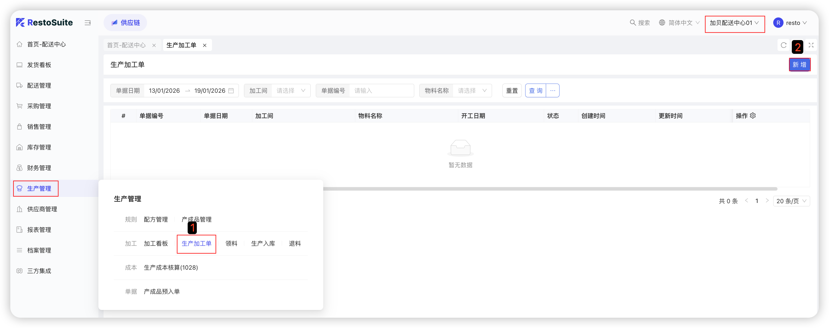 连锁餐饮企业“配送中心”使用的软件系统功能,包括配送规则、配送价格协议、供应商报价单等基础配置、门店采购订单处理、配送中心采购管理、库存管理、生产加工管理、应收应付及报表查看。