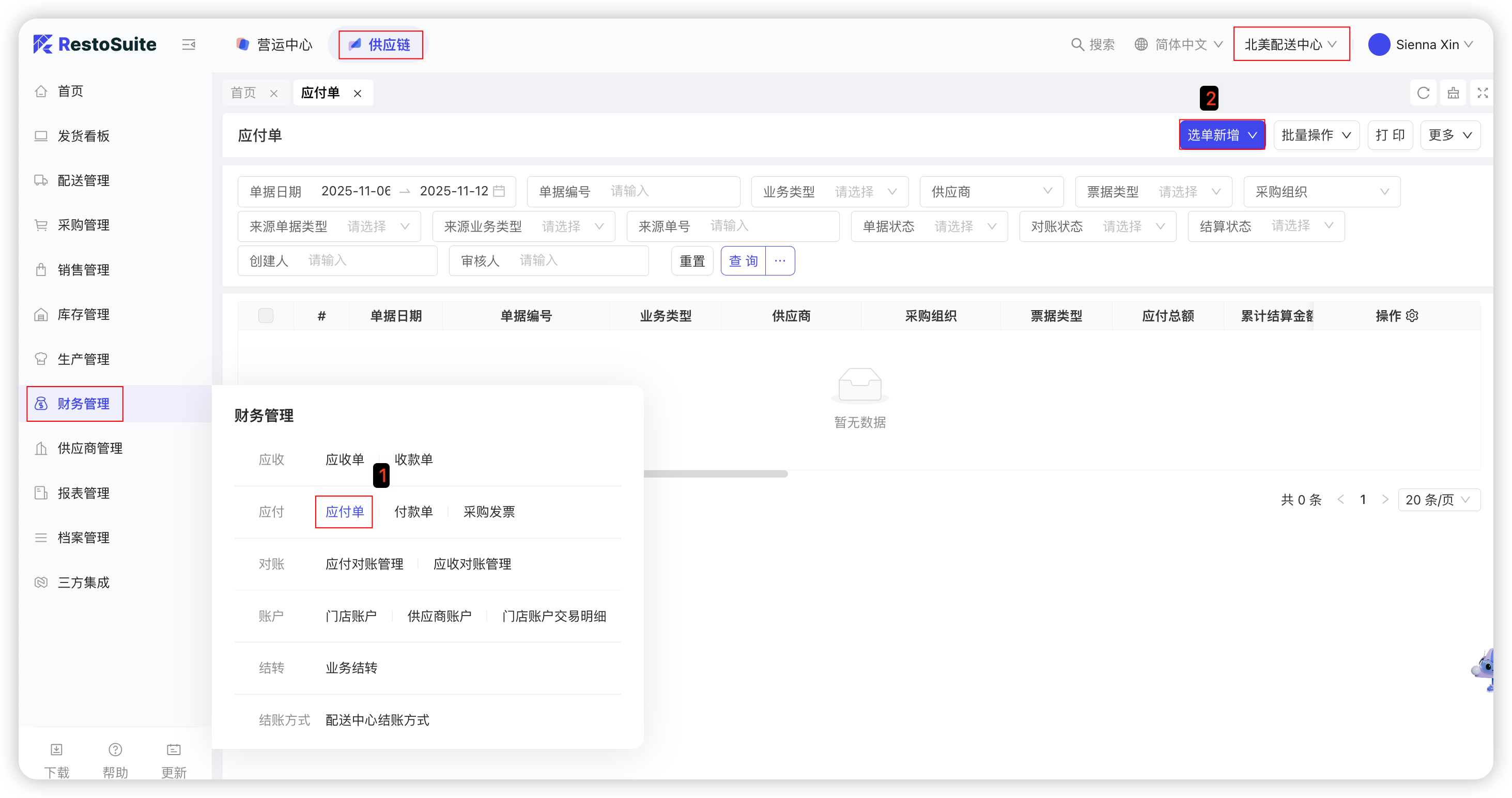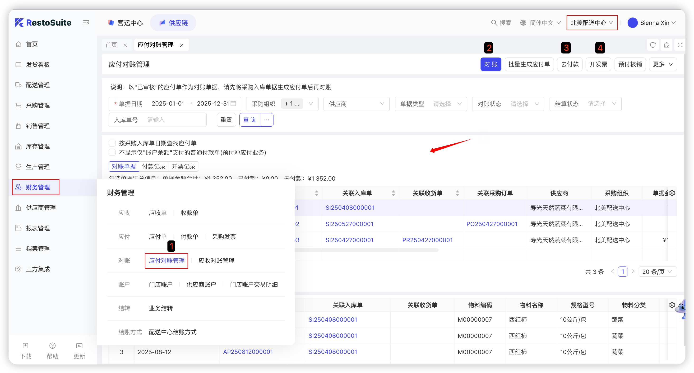 【集团视角/配送中心视角-供应链板块-财务管理-应付对账管理】: