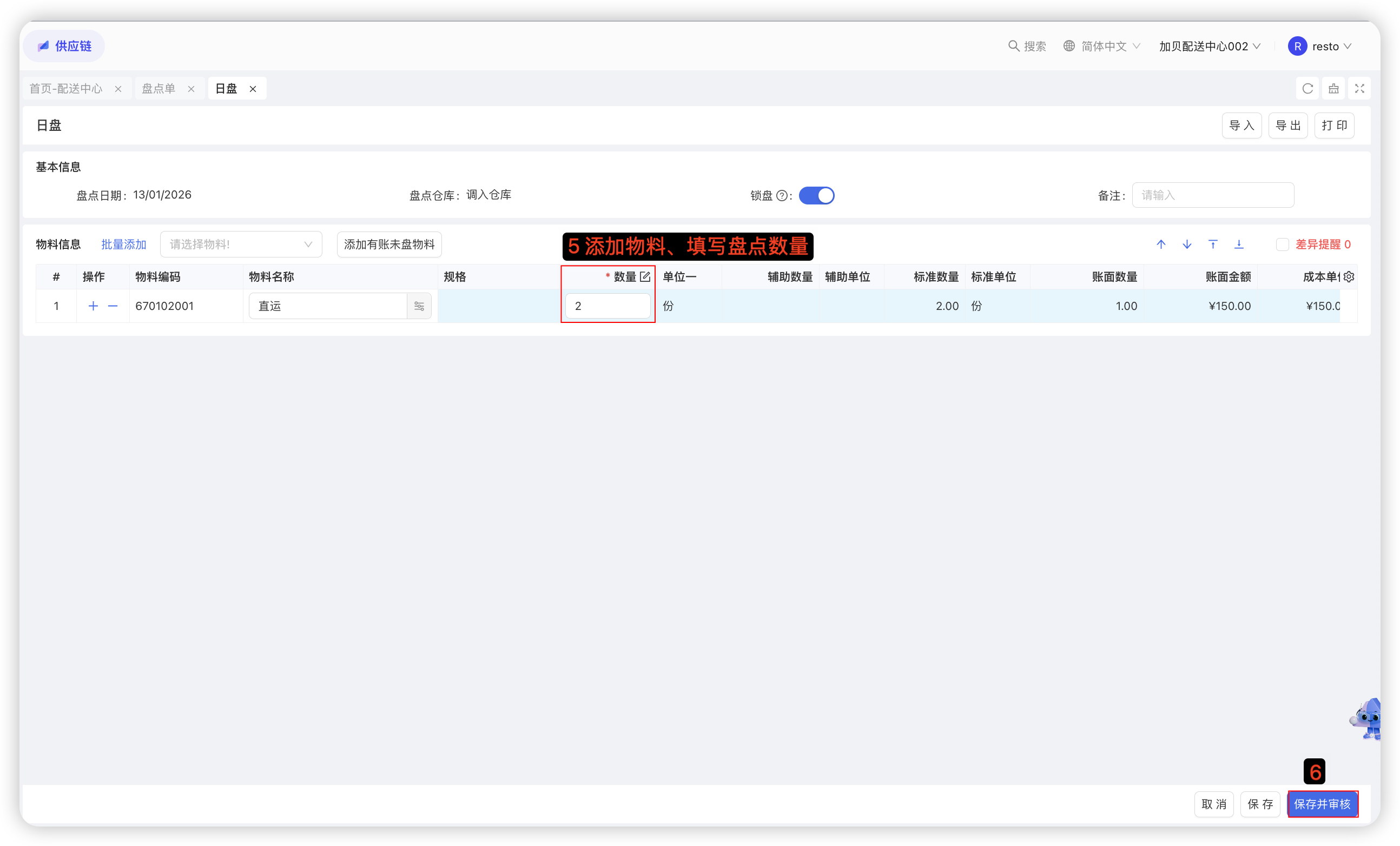 配送中心仓管员,根据实物数量,常规备货物料按需发起申请,采购员统一采购。