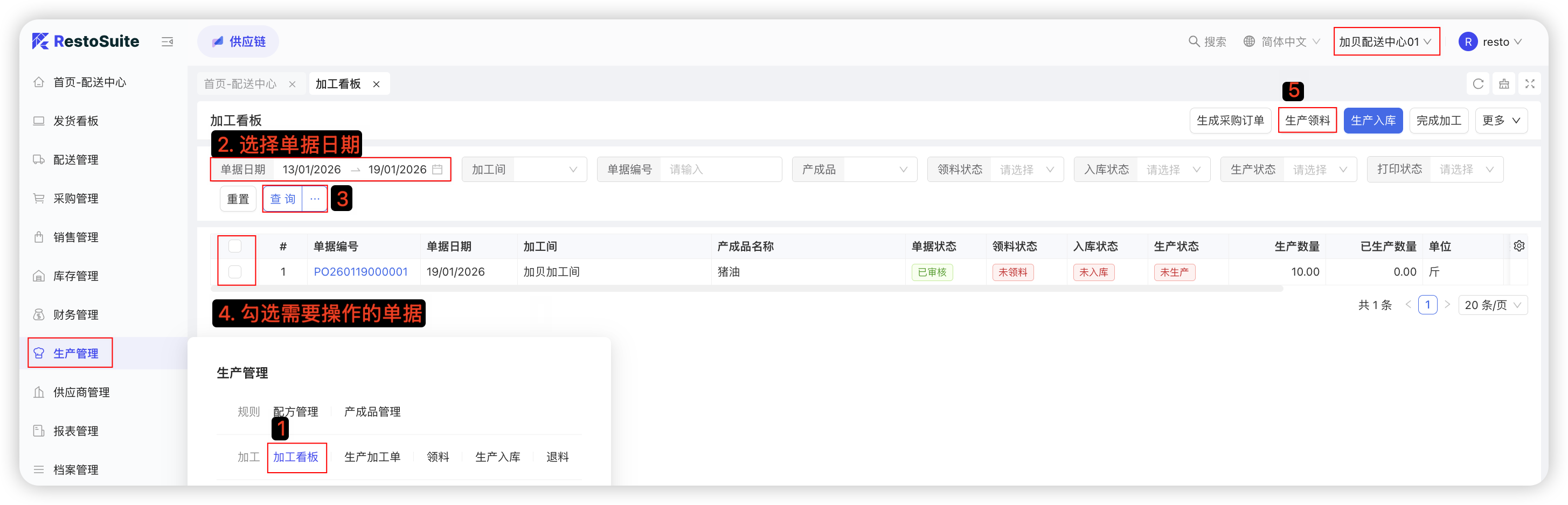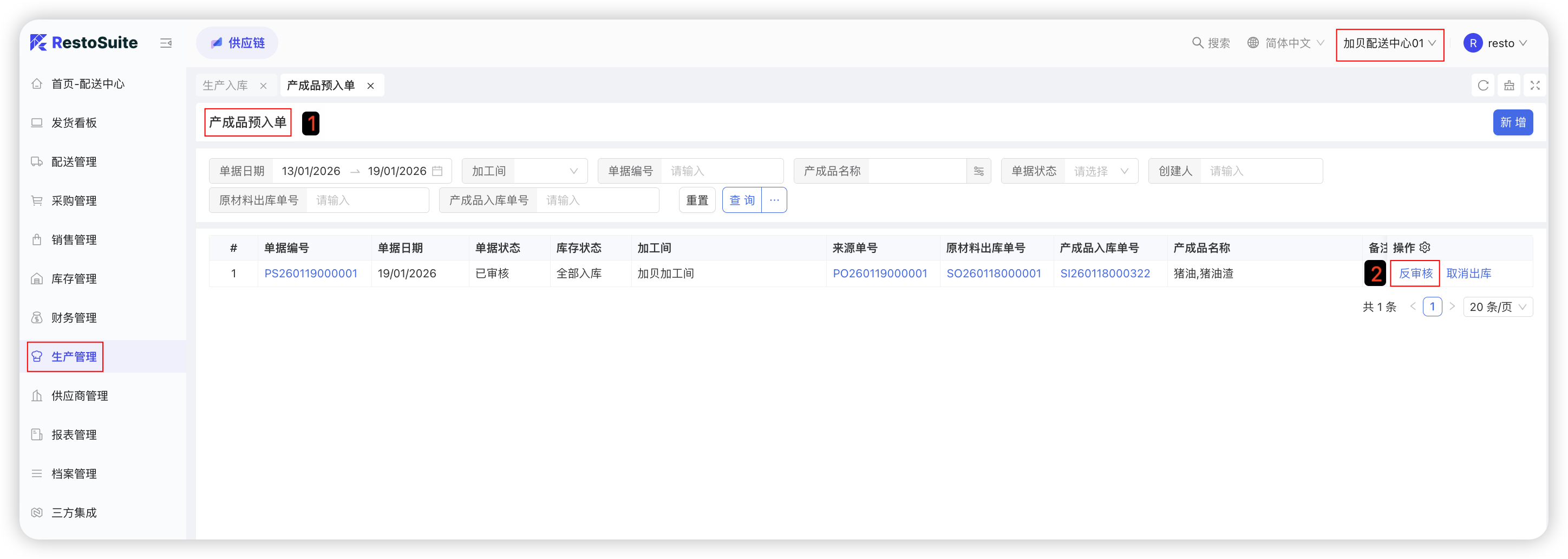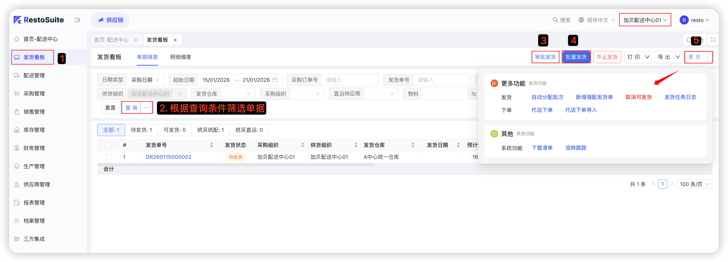 - 手工拉取配送出库单据生成;