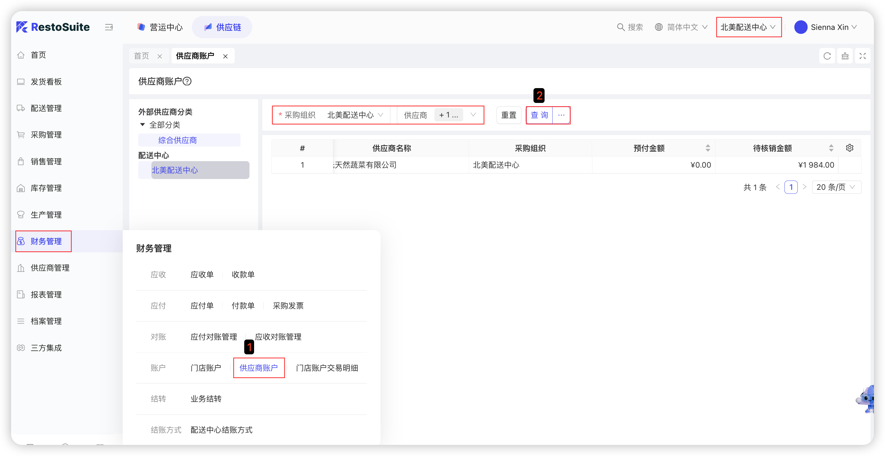 【集团视角/配送中心视角/门店视角-供应链板块-财务管理-供应商账户】: