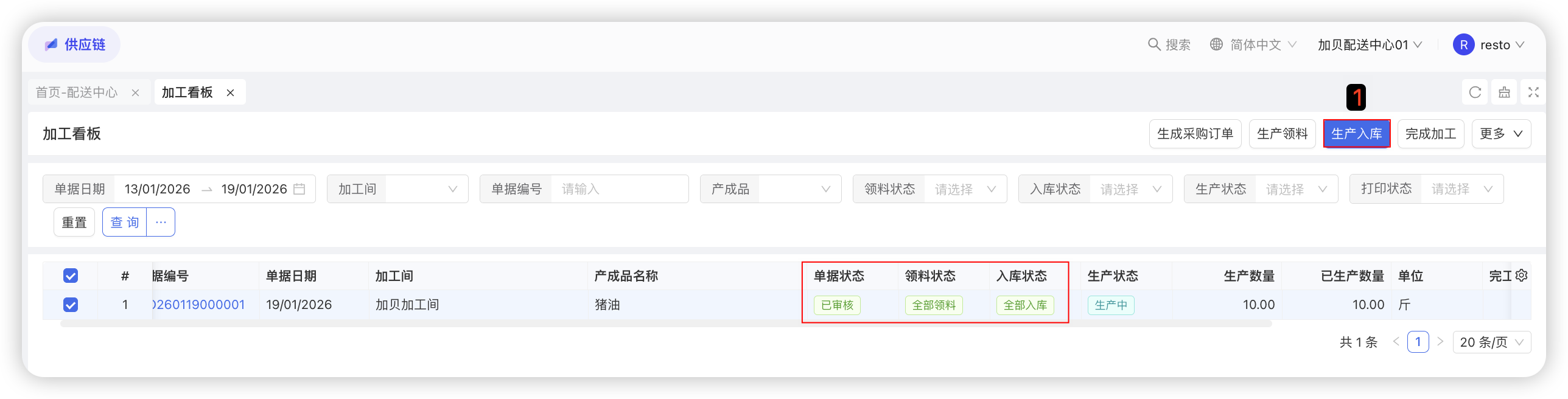配送中心采购收货单主要用来处理供应商外采(直配)收货业务,供应商送货到仓后,仓库人员根据实收数量进行收货处理,生成对应的采购入库单据,支持多次收货。