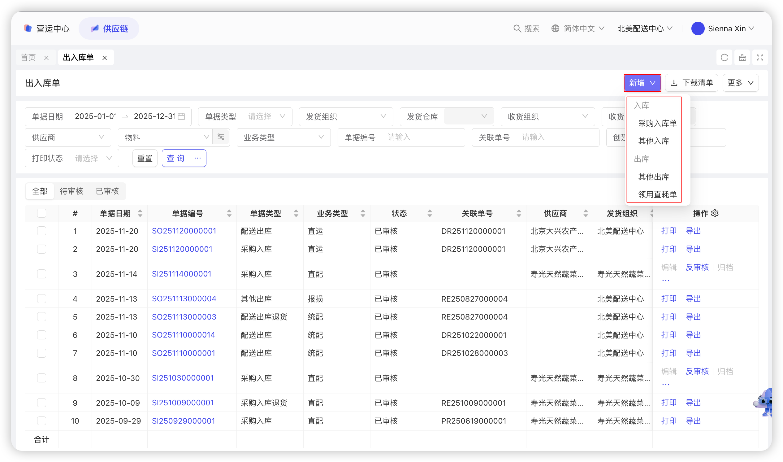 - 支持点击【流转记录】可以查看订单后续生成的发货单及收货单,便于追溯查询;